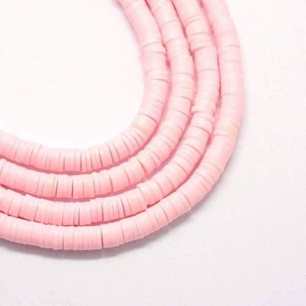 Light pink polymer beads, jewelry making, plastic beads, heishi beads, disc beads, creative supplies, 4mm, thread of 380 beads