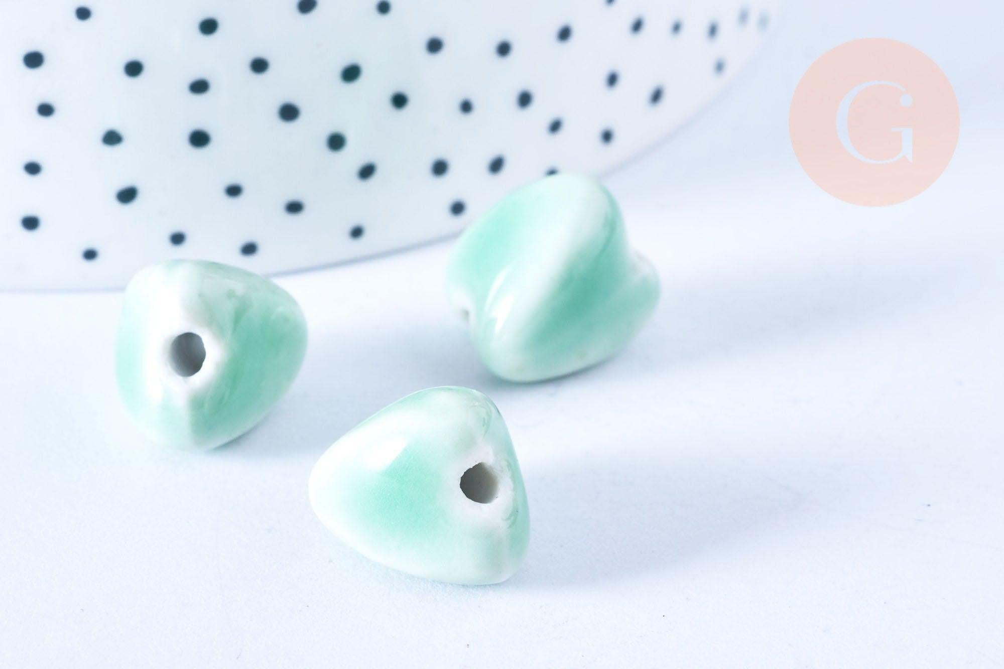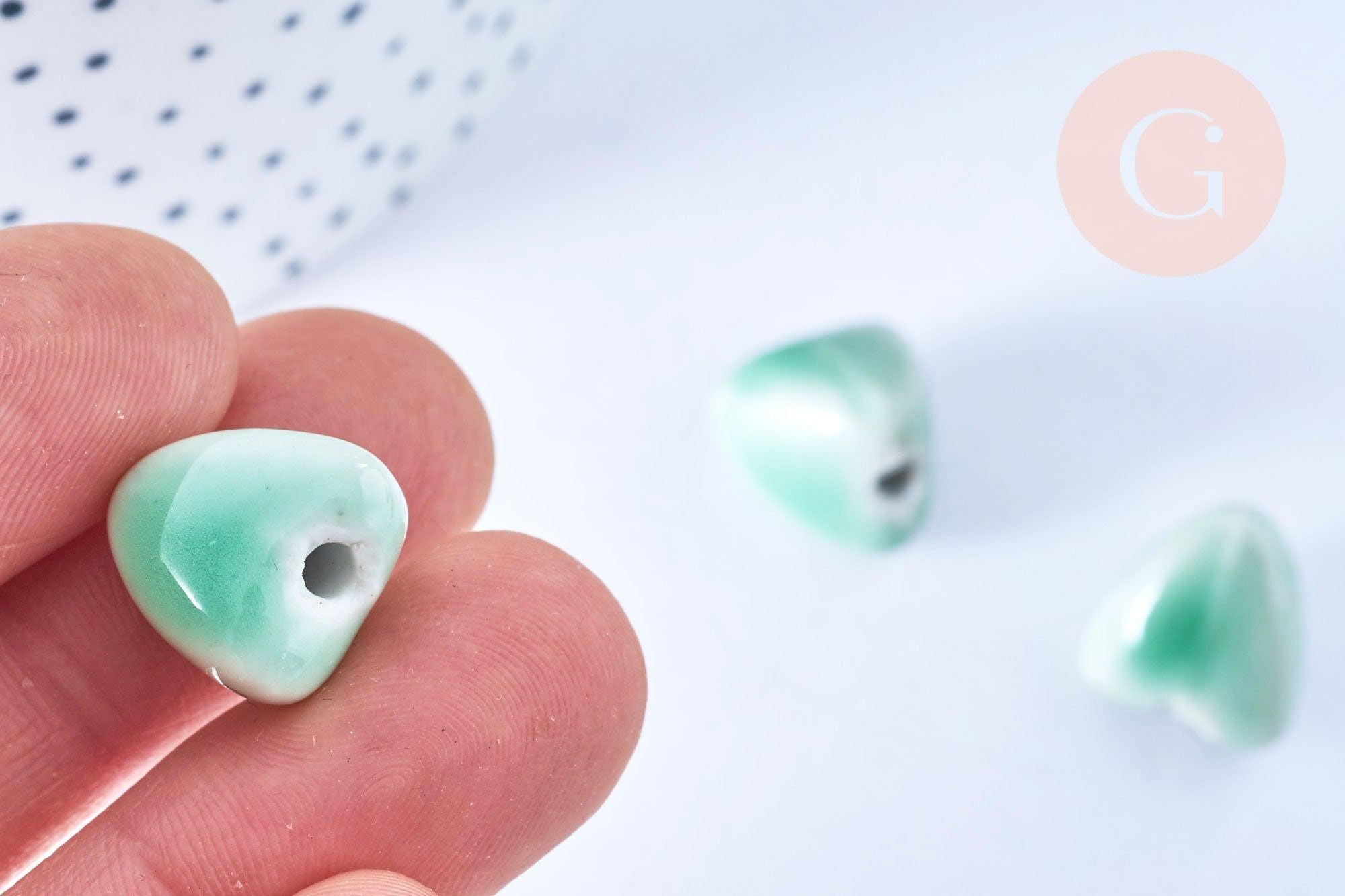 Perle porcelaine triangle verte 15mm, x10 (G5389)