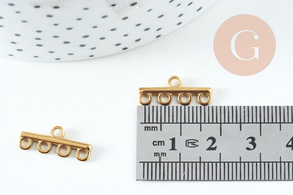 Connecteur Intercalaire bracelet 5 rangs acier 304 inoxydable doré 19mm, x2 (G10738)