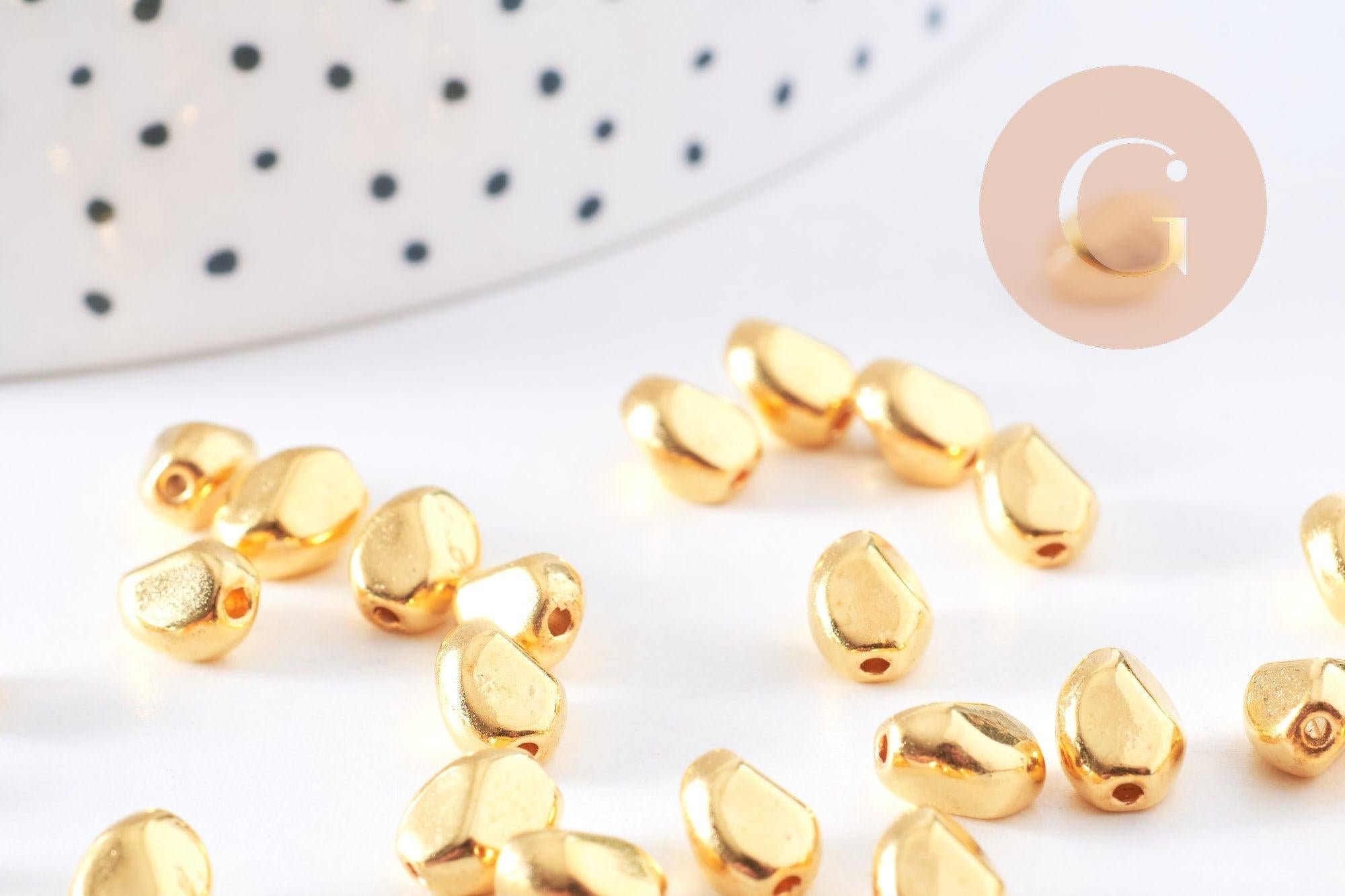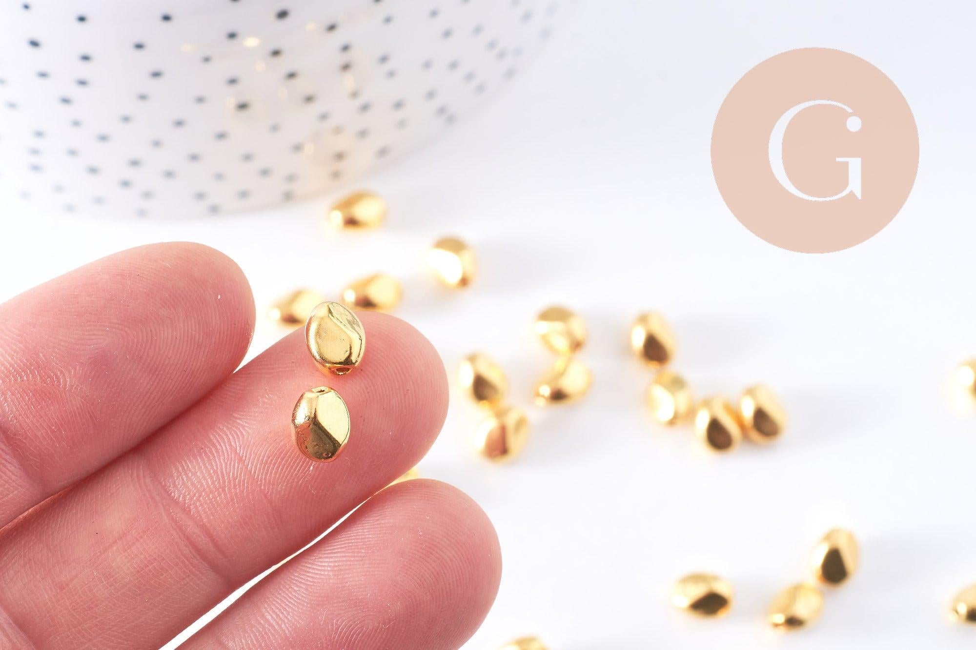 Add depth and sparkle to your creations with these pretty oval nugget-shaped spacer beads in gold-plated zamac. Their gold finish gives them a precious look, perfect for adding rhythm to your necklaces, bracelets, or earrings.