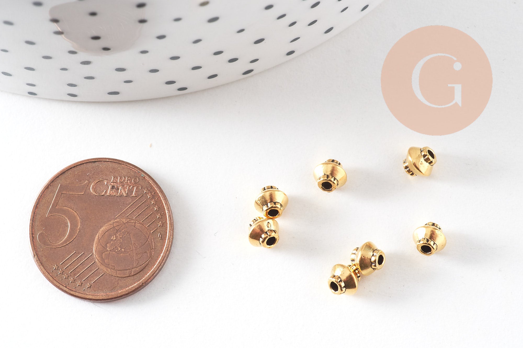 Bring a warm, ethnic touch to your creations with these Tibetan-style spacer beads. Their antique gold finish and bicone shape make them perfect for structuring your jewelry while giving it character.