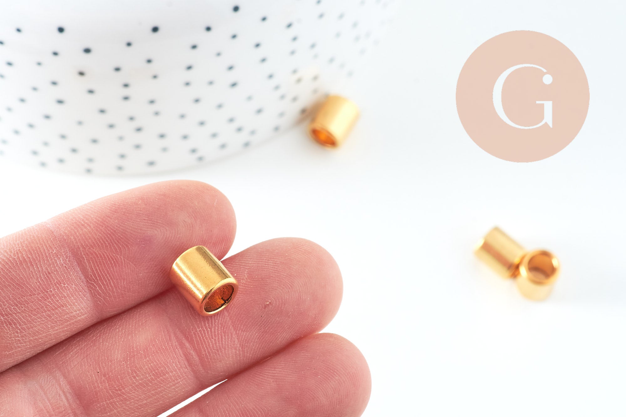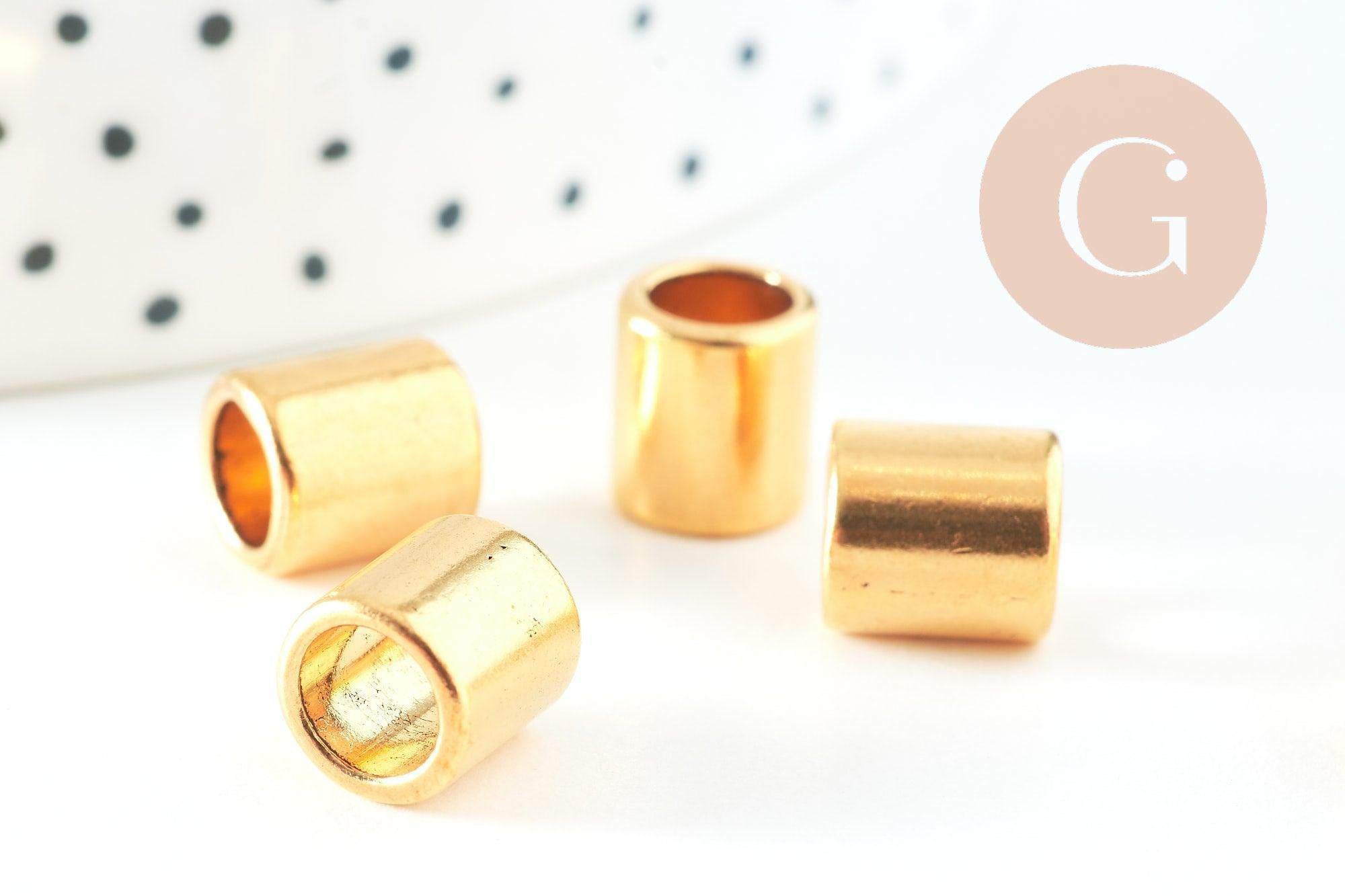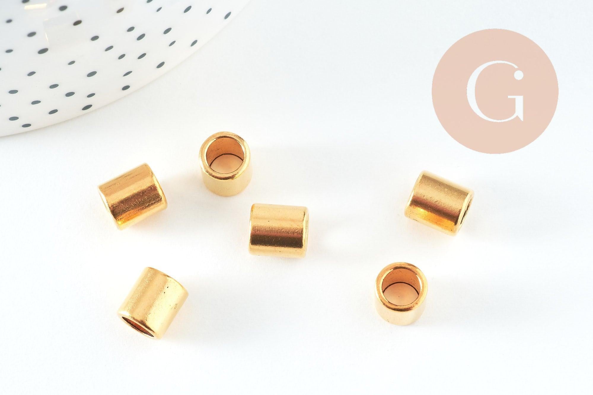 Add a stylish, golden finish to your jewelry with this set of 50 smooth gold-plated zamac tube beads . Their cylindrical shape and large hole make them ideal for DIY creations with cords, leather, or thick chains.