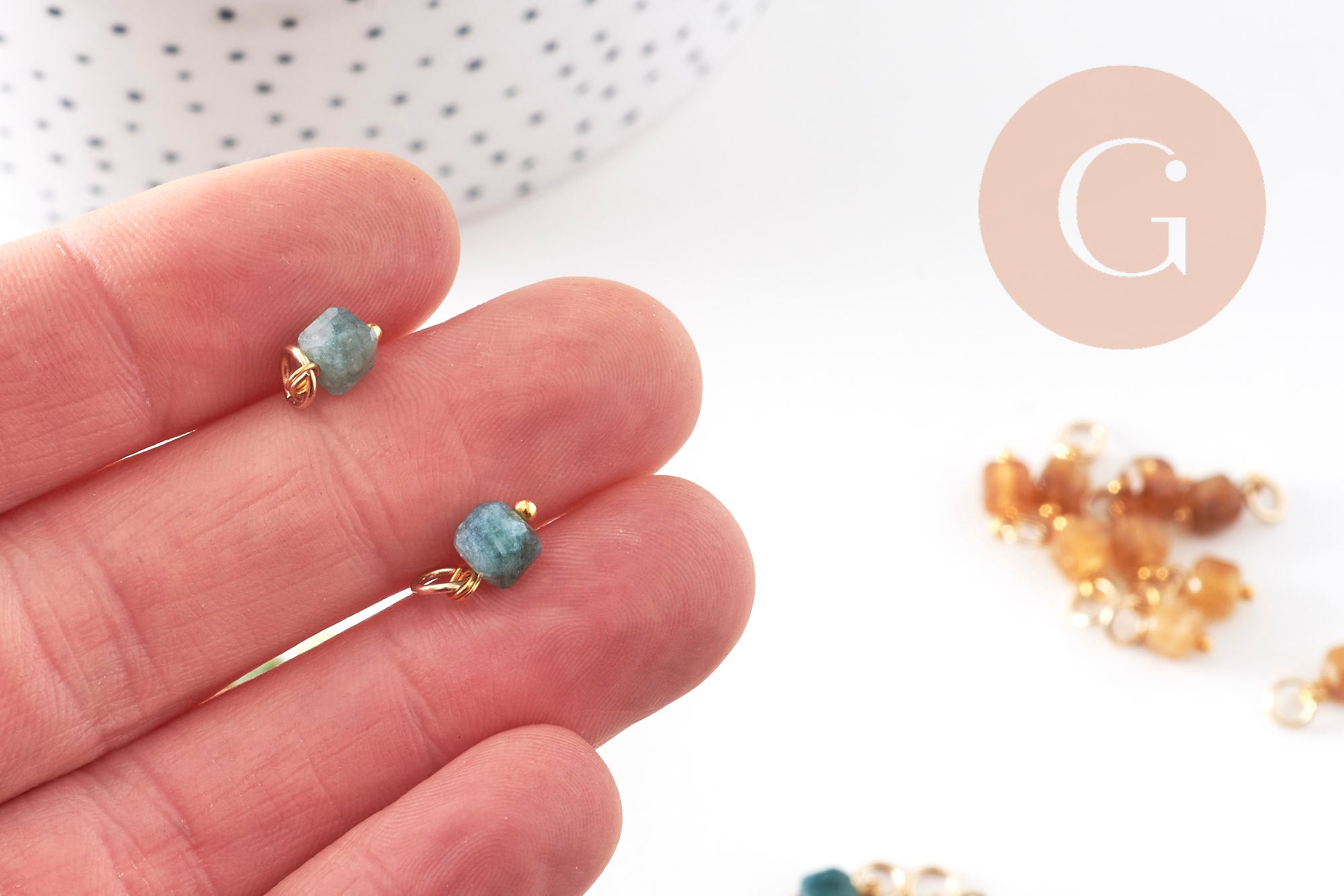 Other charms made of natural stones and findings in gold-plated steel are available in the Gingerlily shop.