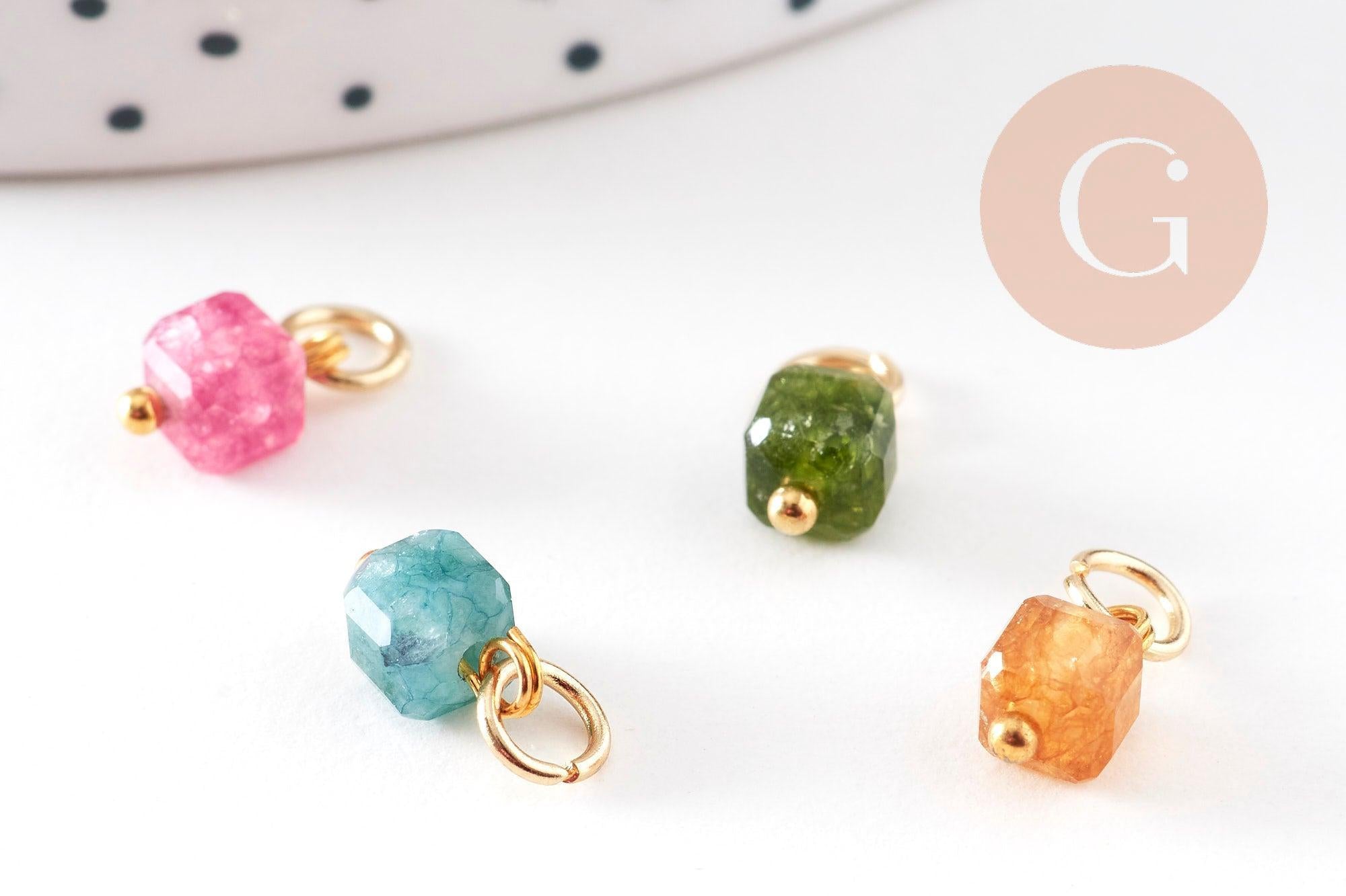 Add a precious and colorful touch to your creations with this faceted natural tourmaline cube charm mounted on a 304 gold-plated stainless steel ring . Its mineral luster and geometric shape bring a modern and elegant touch to your DIY jewelry.