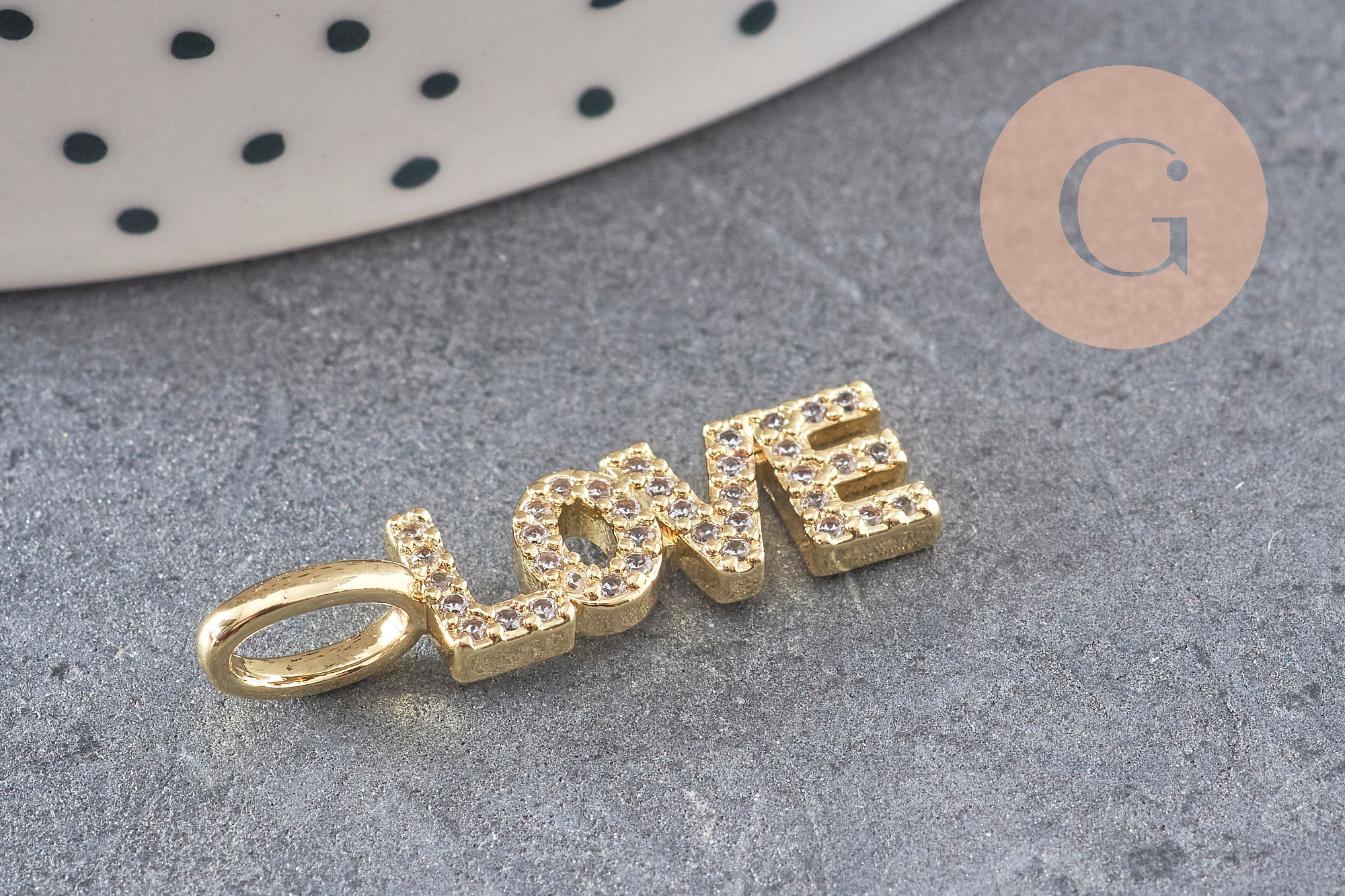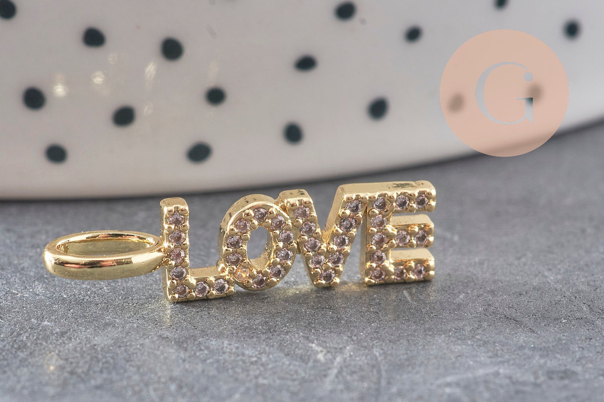 Add a touch of romance and sparkle to your creations with this 18K gold-plated brass "LOVE" charm , set with small, sparkling white zircons . Delicate and luminous, it pairs perfectly with refined creations, whether everyday jewelry or symbolic gifts.