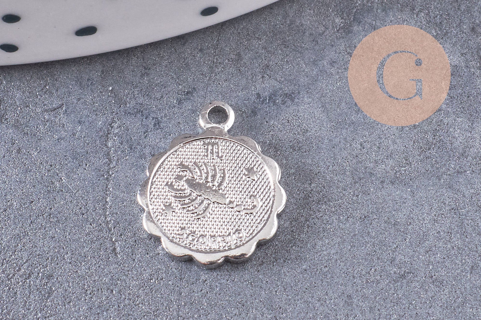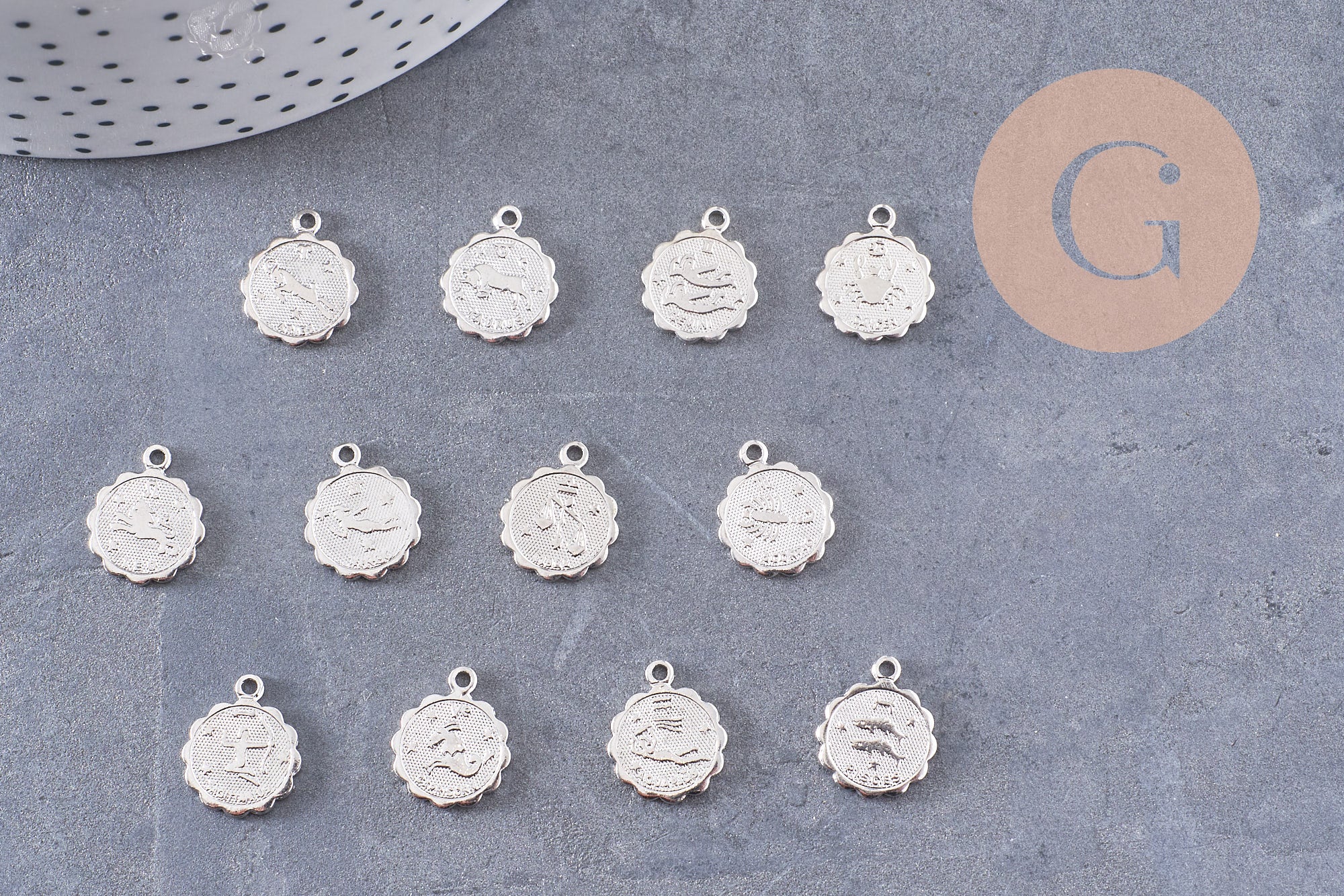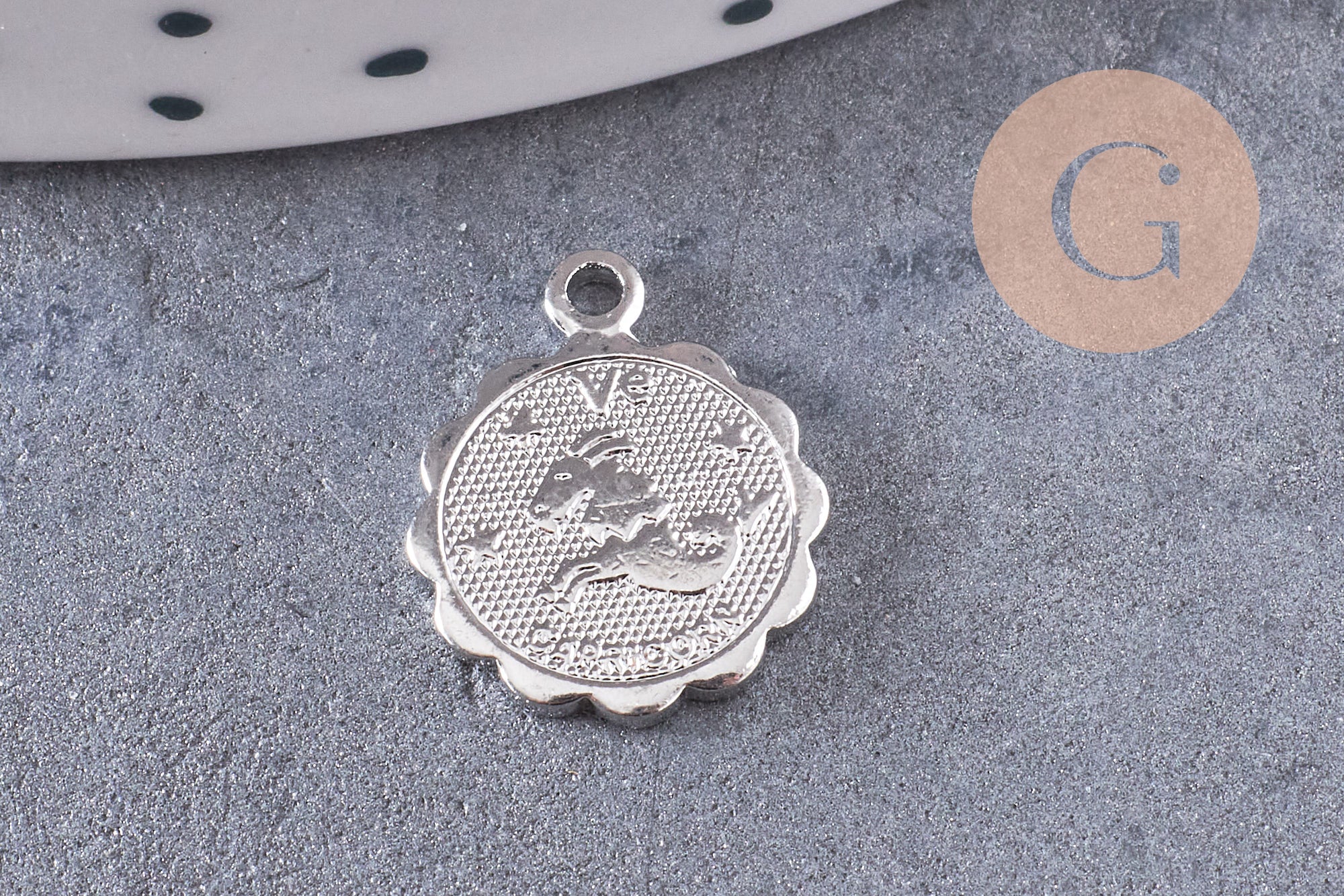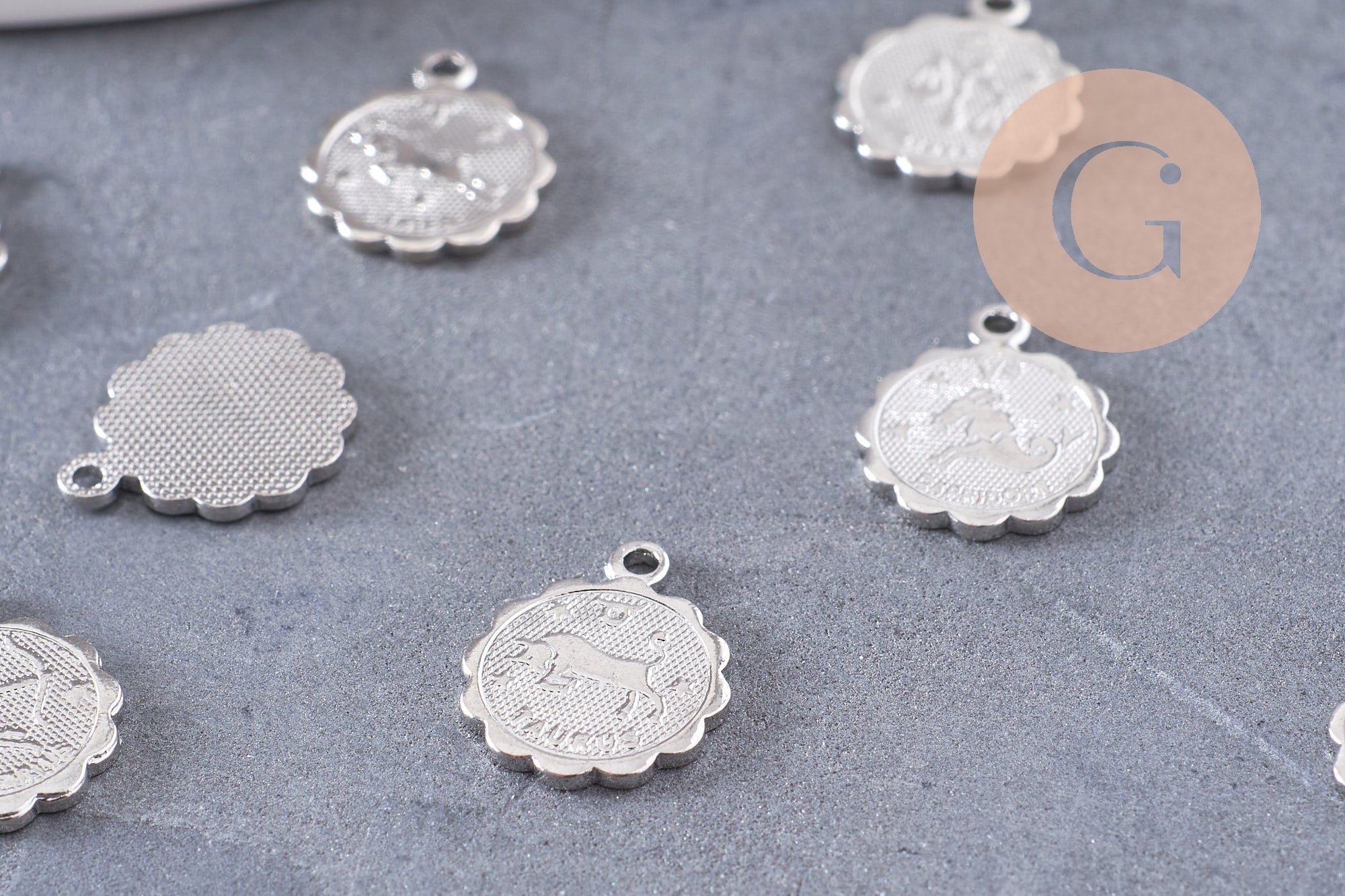 A pretty round silver-plated brass medal on the theme of astrology, representing the astrological sign of your choice