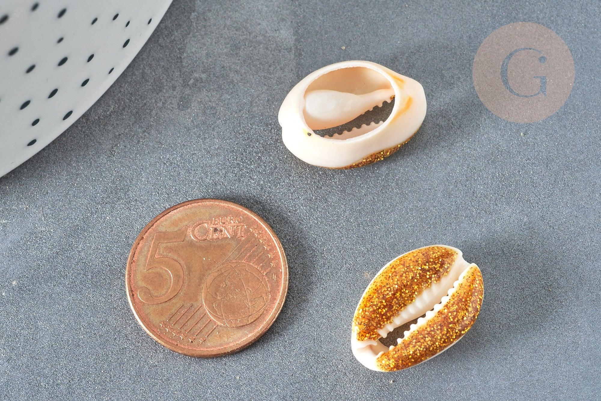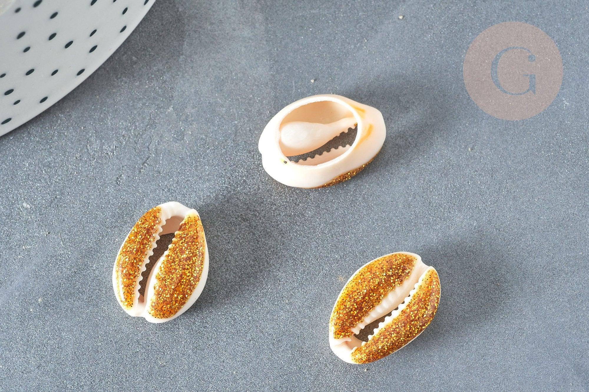 This pendant is a real undrilled Cowrie shell , covered with a gold glitter epoxy resin.