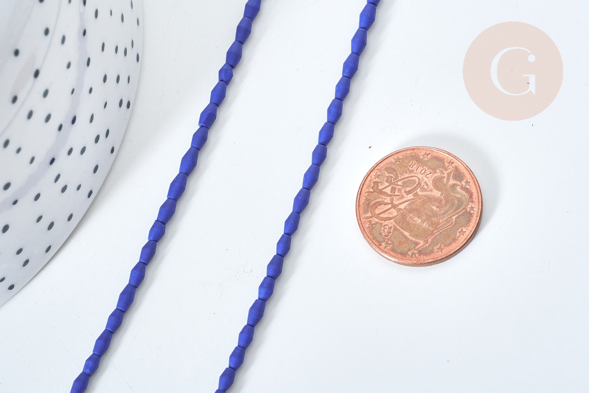A strand of natural howlite tube beads tinted dark blue, to create your earrings, necklaces and bracelets.