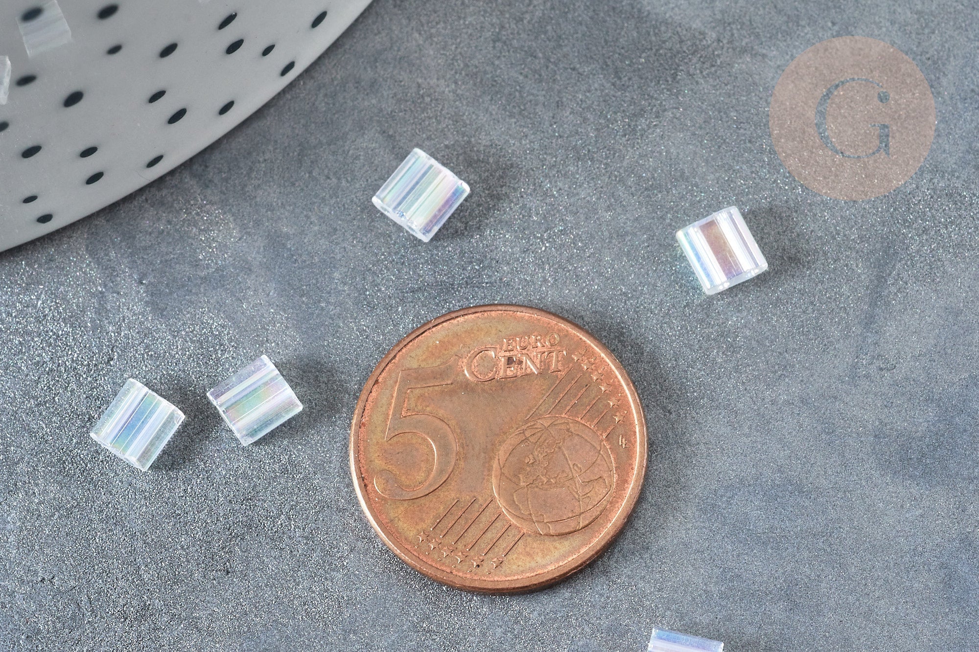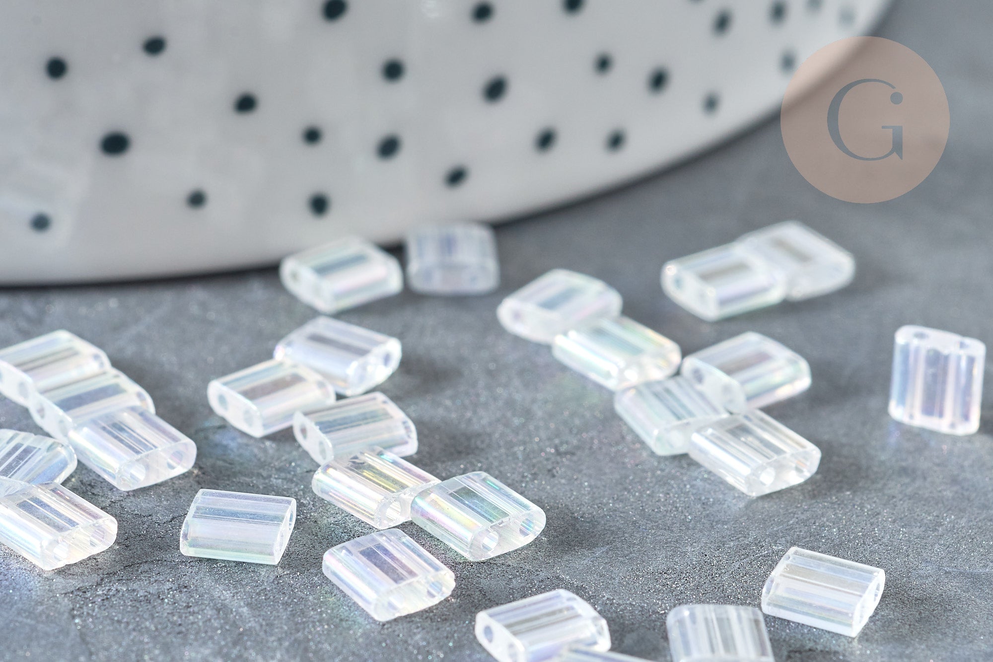 Perles rocaille carré verre rectangle transparent irisé, création bracelet, perle tila,4.5mm,2 trous, x50 (4.8GR) (G7487)