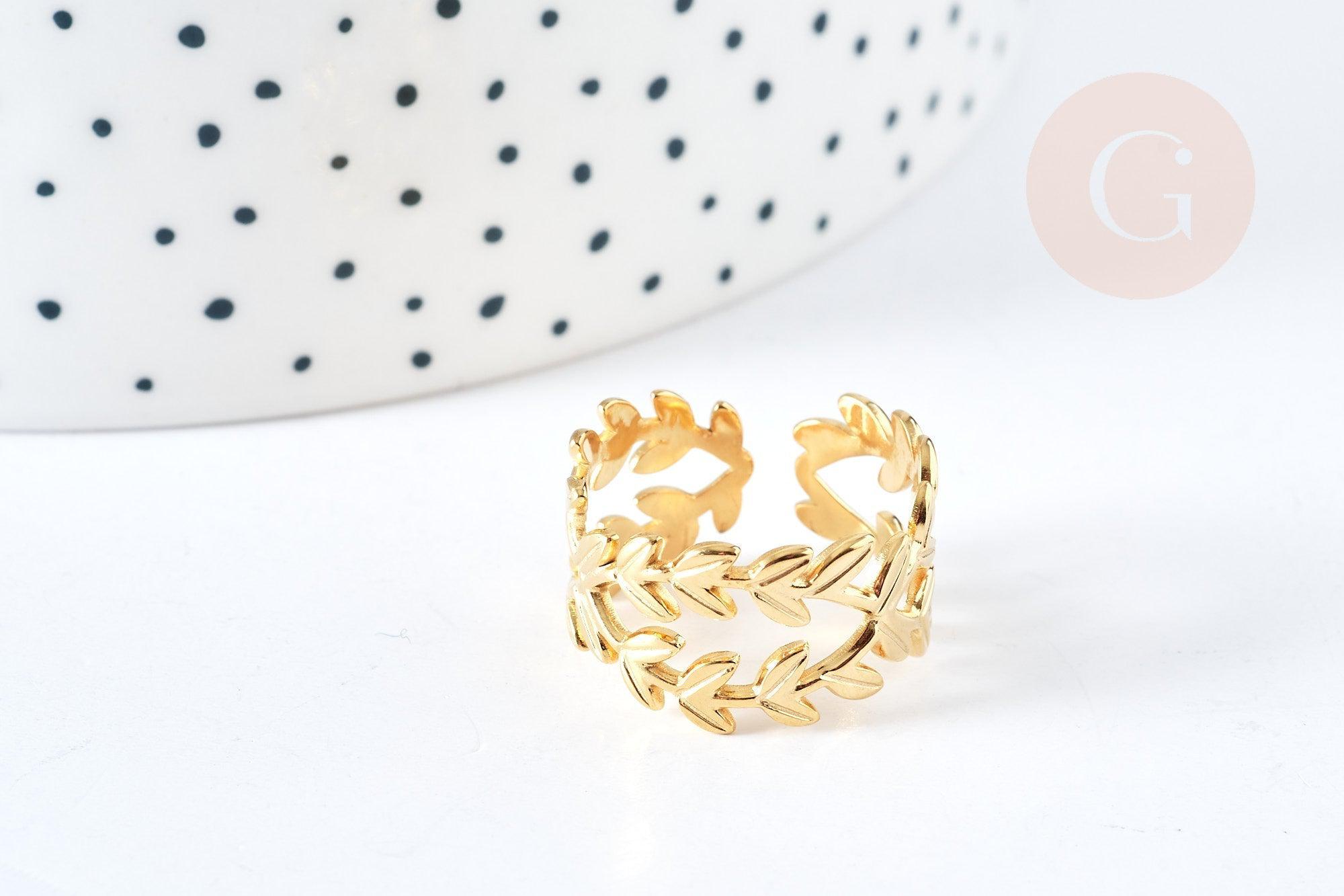 Bague réglable feuilles acier doré 304 inoxydable IP taille 54, x1 (G8463)