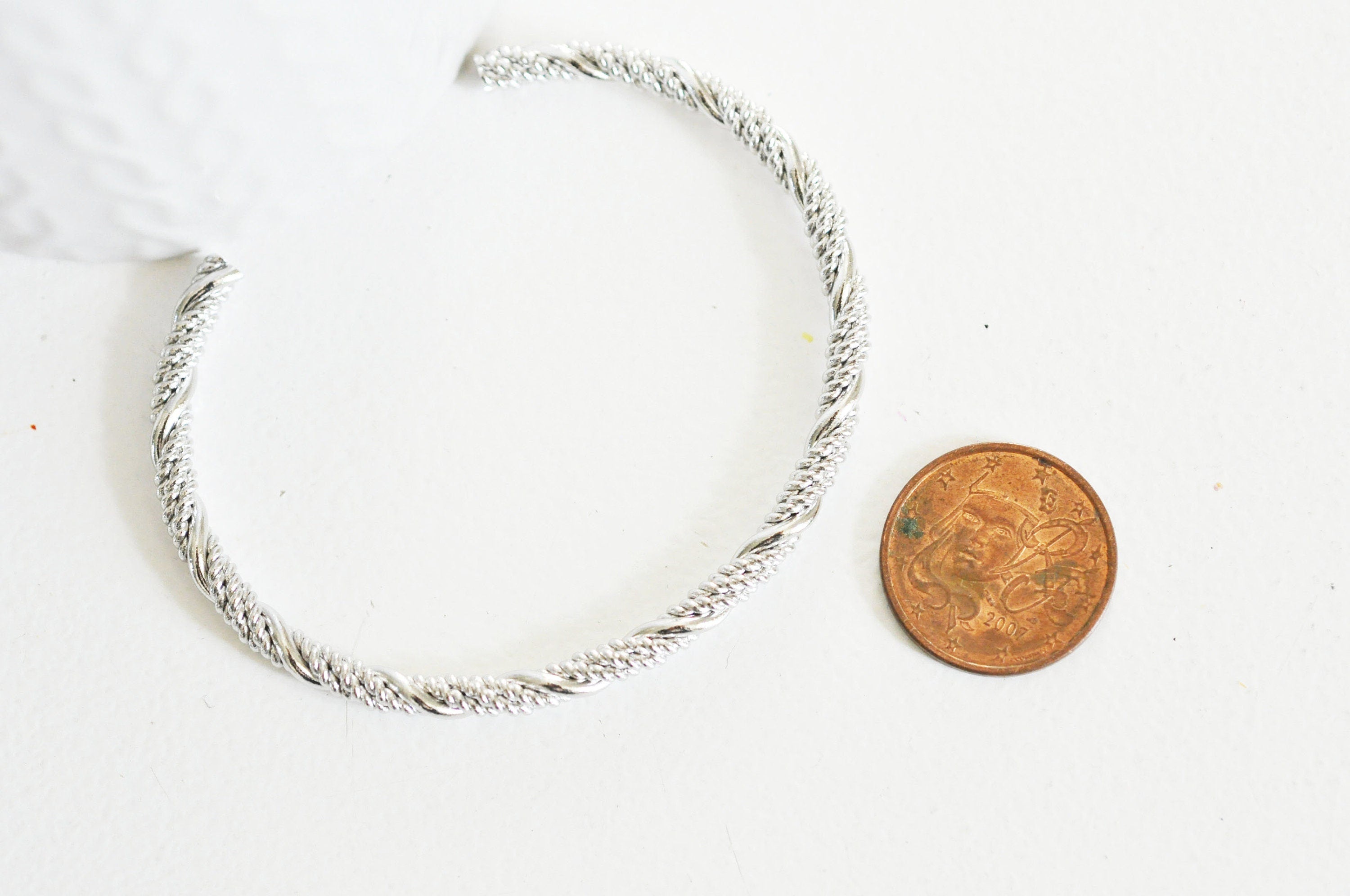 Adjustable braided white gold finish bangle bracelet, rhodium finish, white gold gilding, jewelry making, silver bracelet, 65x55mm For cuff bracelets, here are magnificent braided white gold (rhodium) finish copper supports. Please note: these bracelets are sold without end caps. Width:...