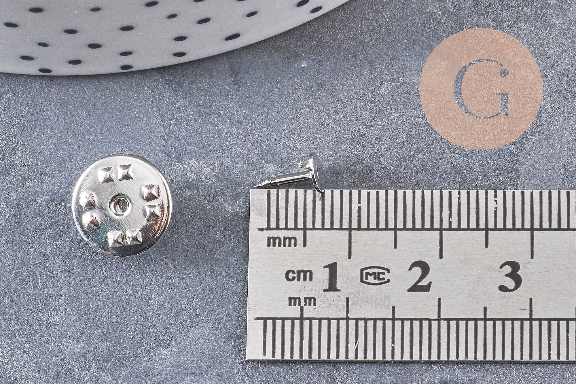 Pin fastener and holder for 11mm platinum iron pins, x5 VALID