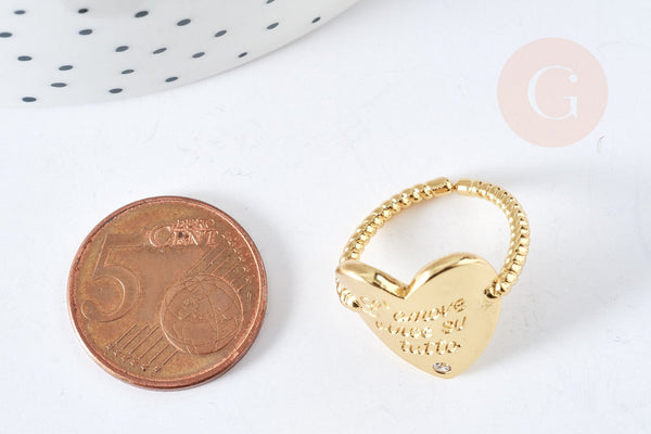 Bague cœur "AMORE" laiton doré 17.5mm, x1 (G8443)