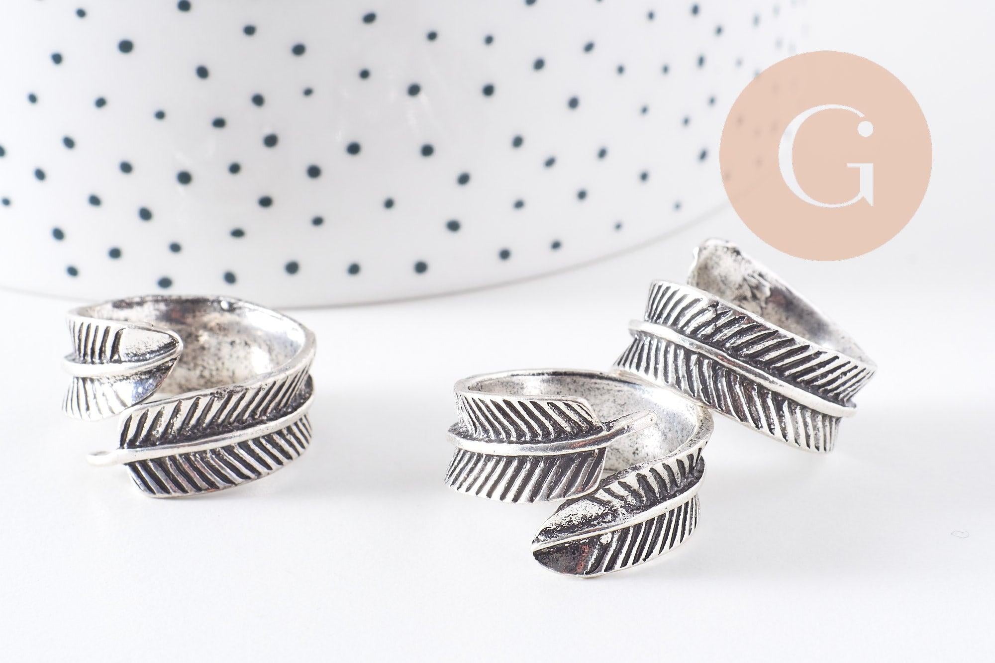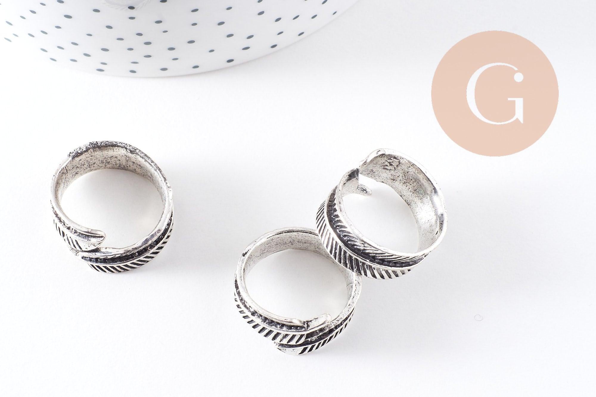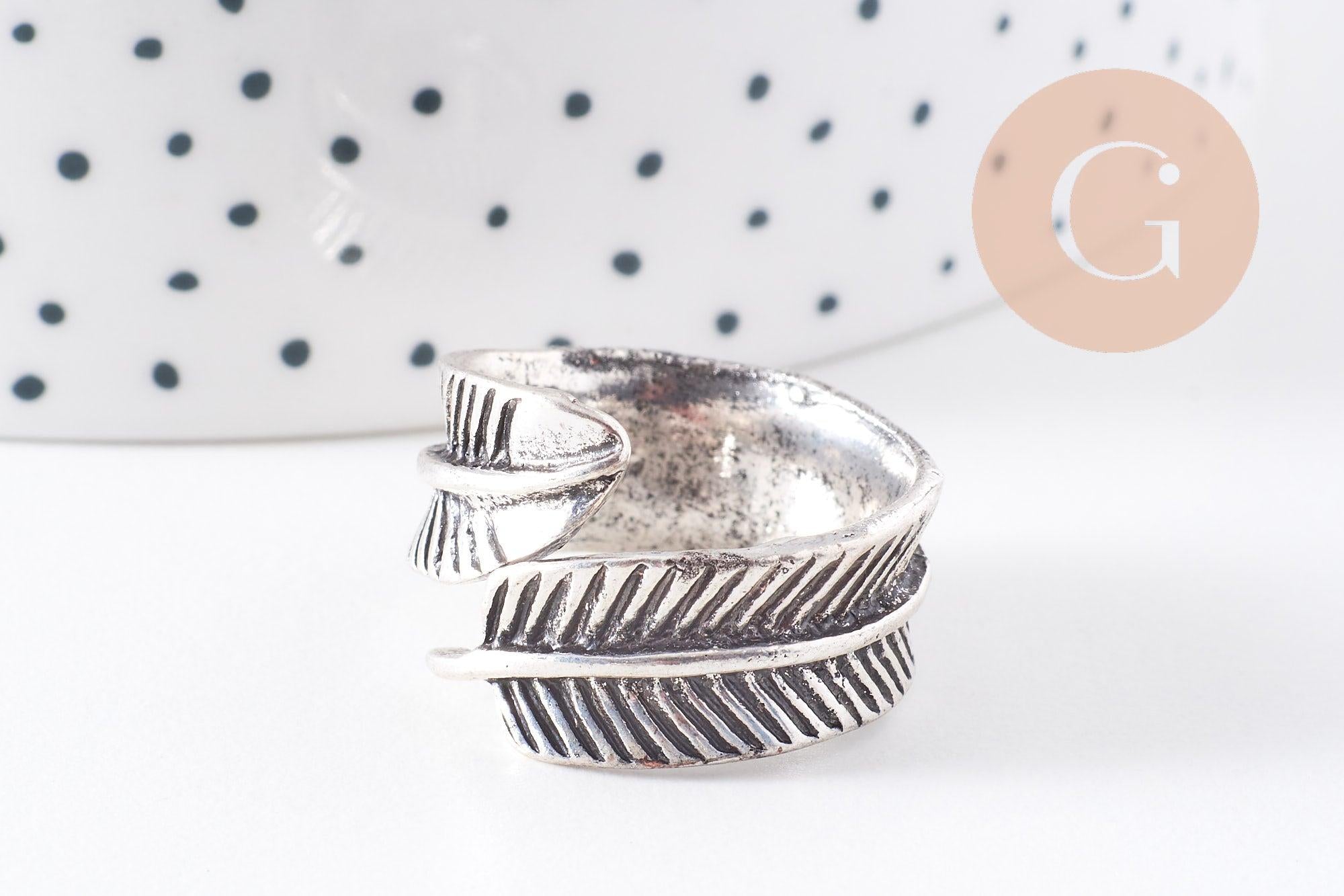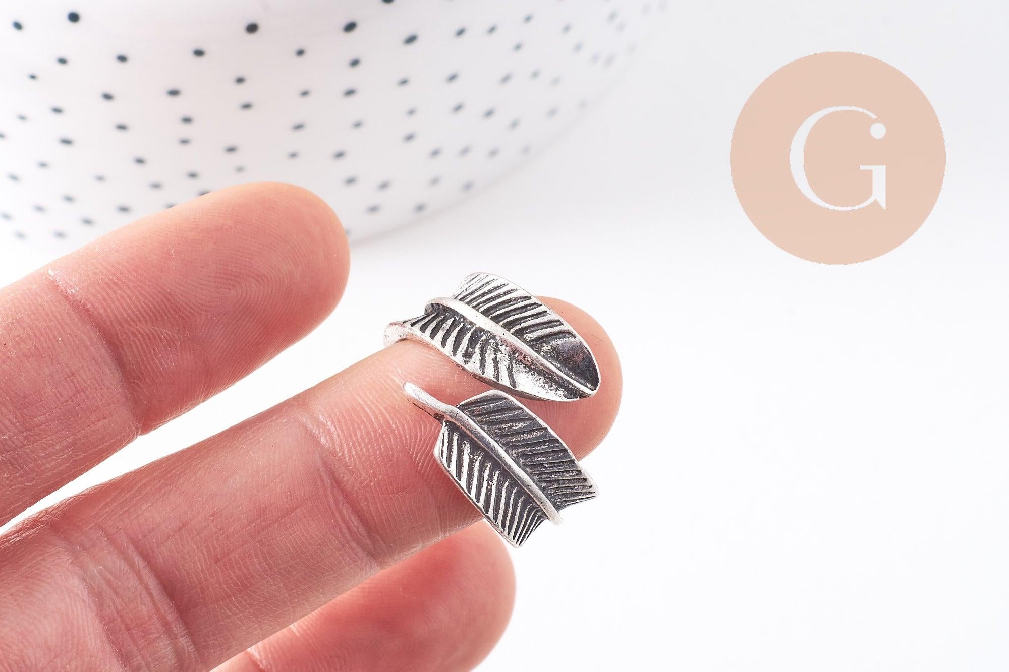 Adjustable silver feather ring, jewelry creation, iron ring, minimalist jewelry, men's ring, jewelry creation, ring support, men's jewelry, 17mm