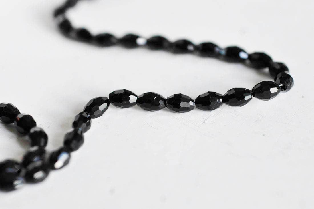 Black glass beads, glass beads, oval shaped bead, creative supply, grain of rice, black glass, jewelry creation, 70 thread A pretty set of 70 oval black opaque glass beads Length: 6mm Width: 4mm Hole: 1mm Pretty beads to make lucky...