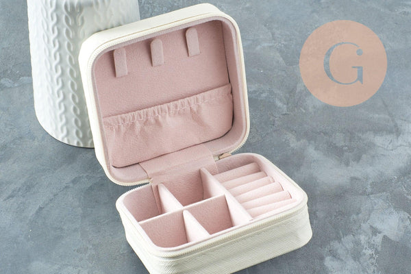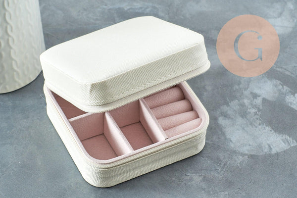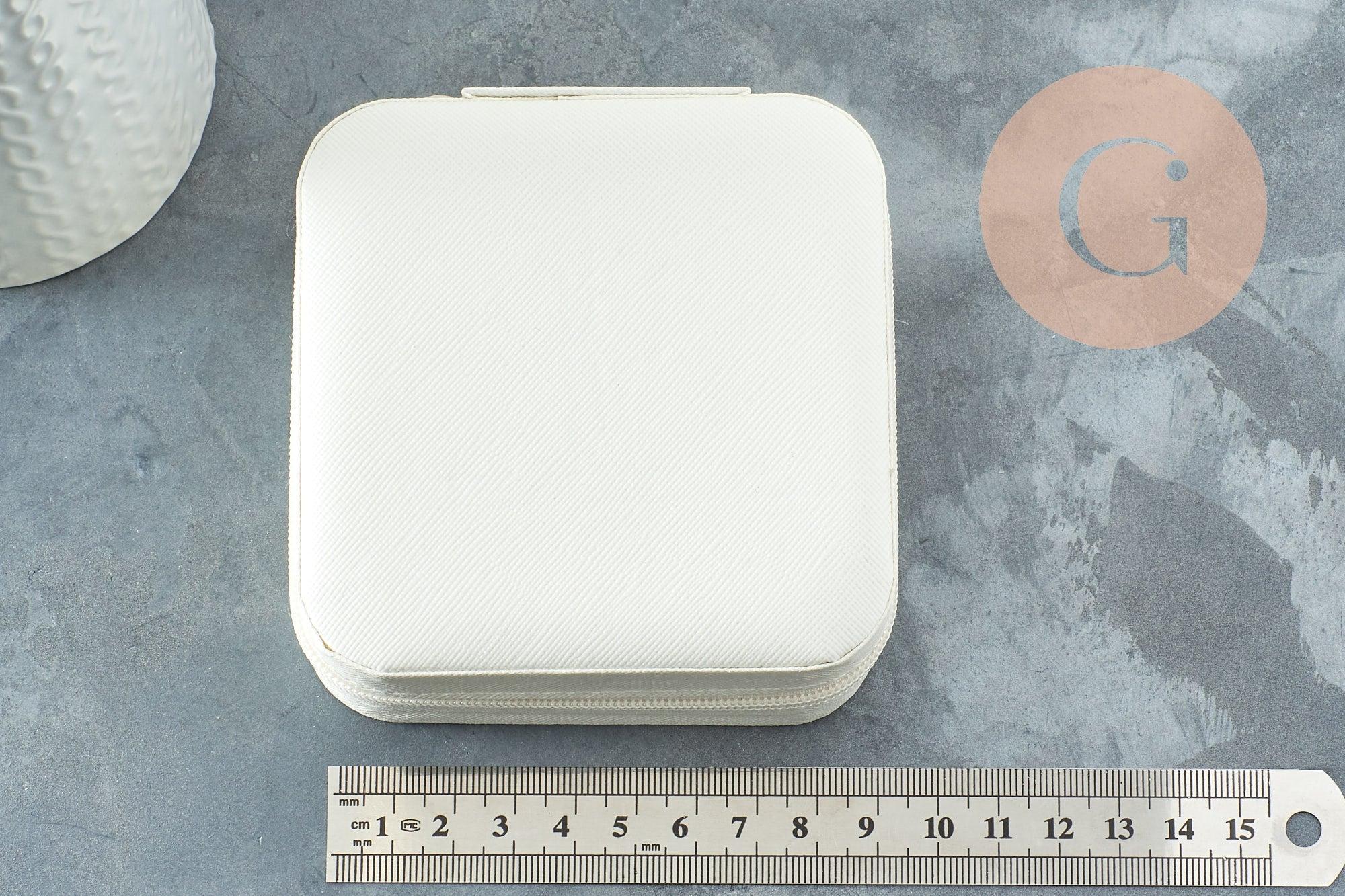 Travel in style with our square jewelry box , designed for lovers of style and functionality. This beige faux leather box offers a chic, minimalist look, while gold-tone brass details add a touch of luxury.