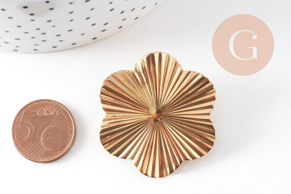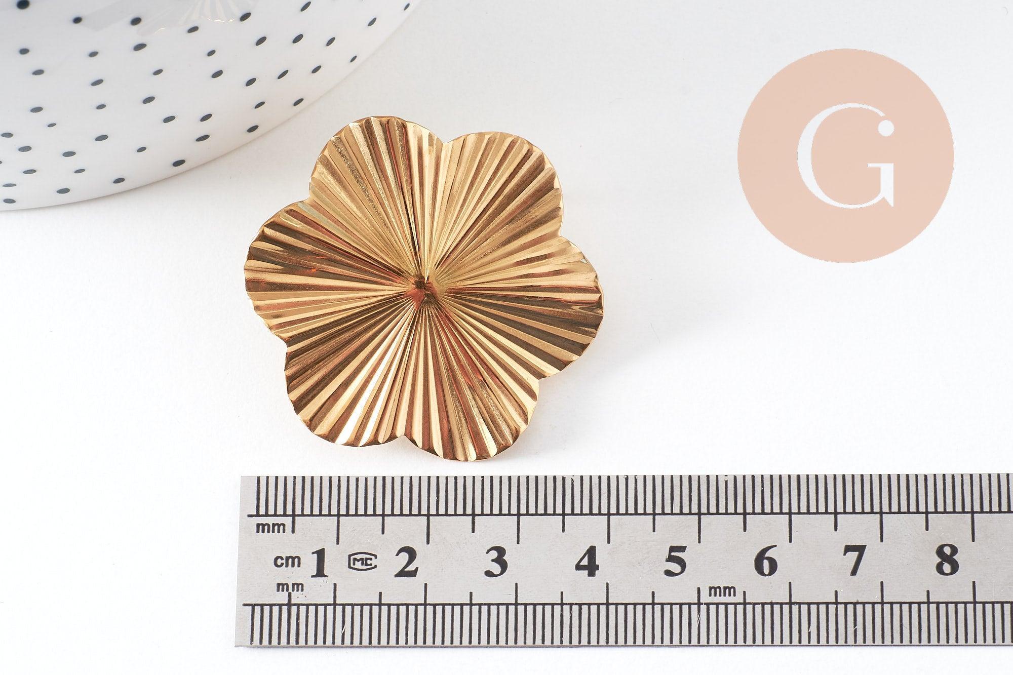 Boucles d'oreilles fleur XL acier inoxydable 304 doré IP 40.5mm, la paire (G10596)