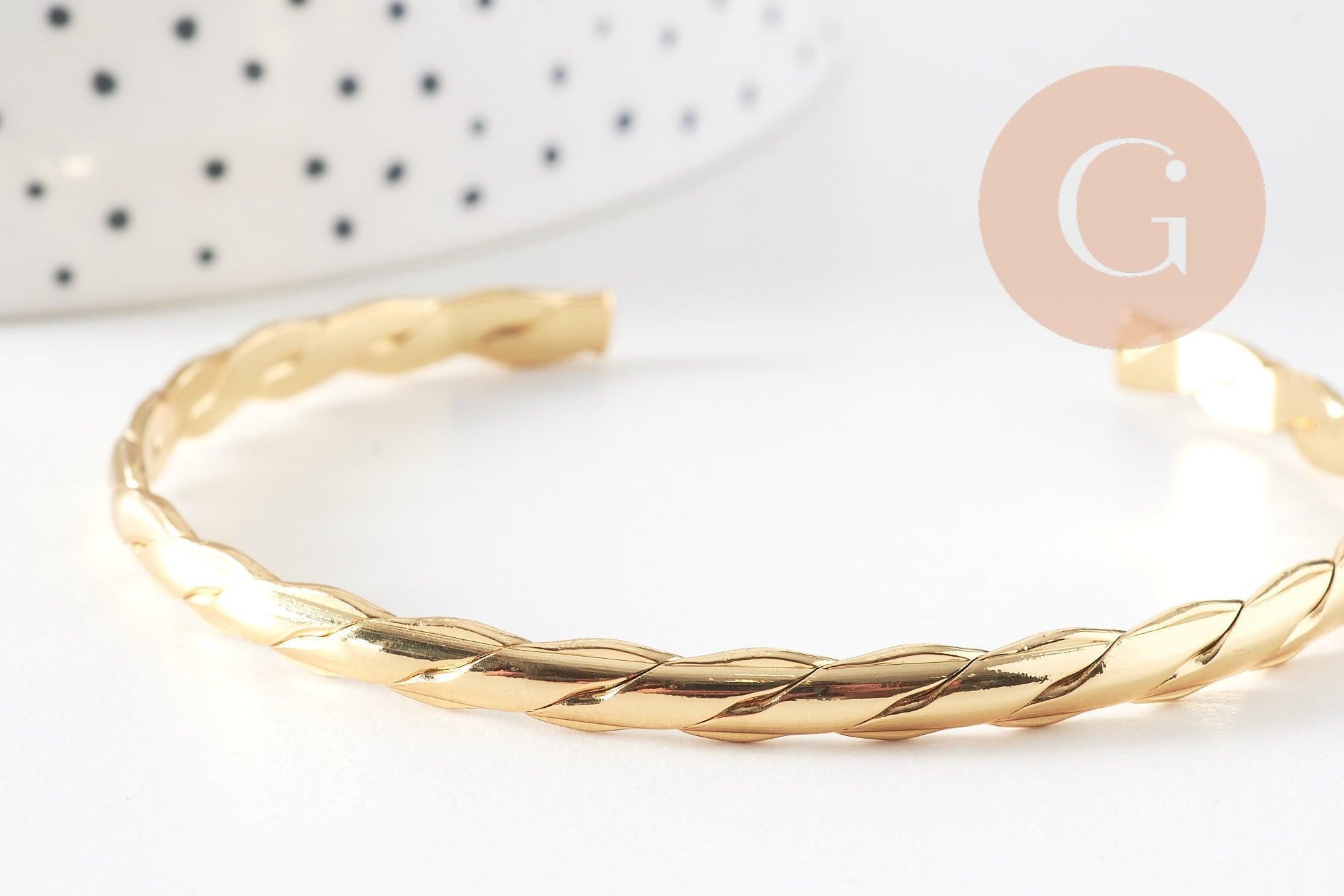 Adjustable 14k gold braided bangle bracelet, creative supplies, gold-plated brass, original bracelet, jewelry making, gold bracelet, 50mm