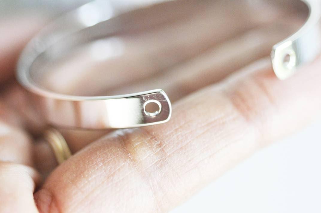 Adjustable white gold finish bangle bracelet, pierced finish, rhodium finish, white gold gilding, jewelry making, silver bracelet, 57mm For cuff bracelets, here are magnificent copper supports in white gold finish (rhodium) pierced on each side to pass charms or pompoms...