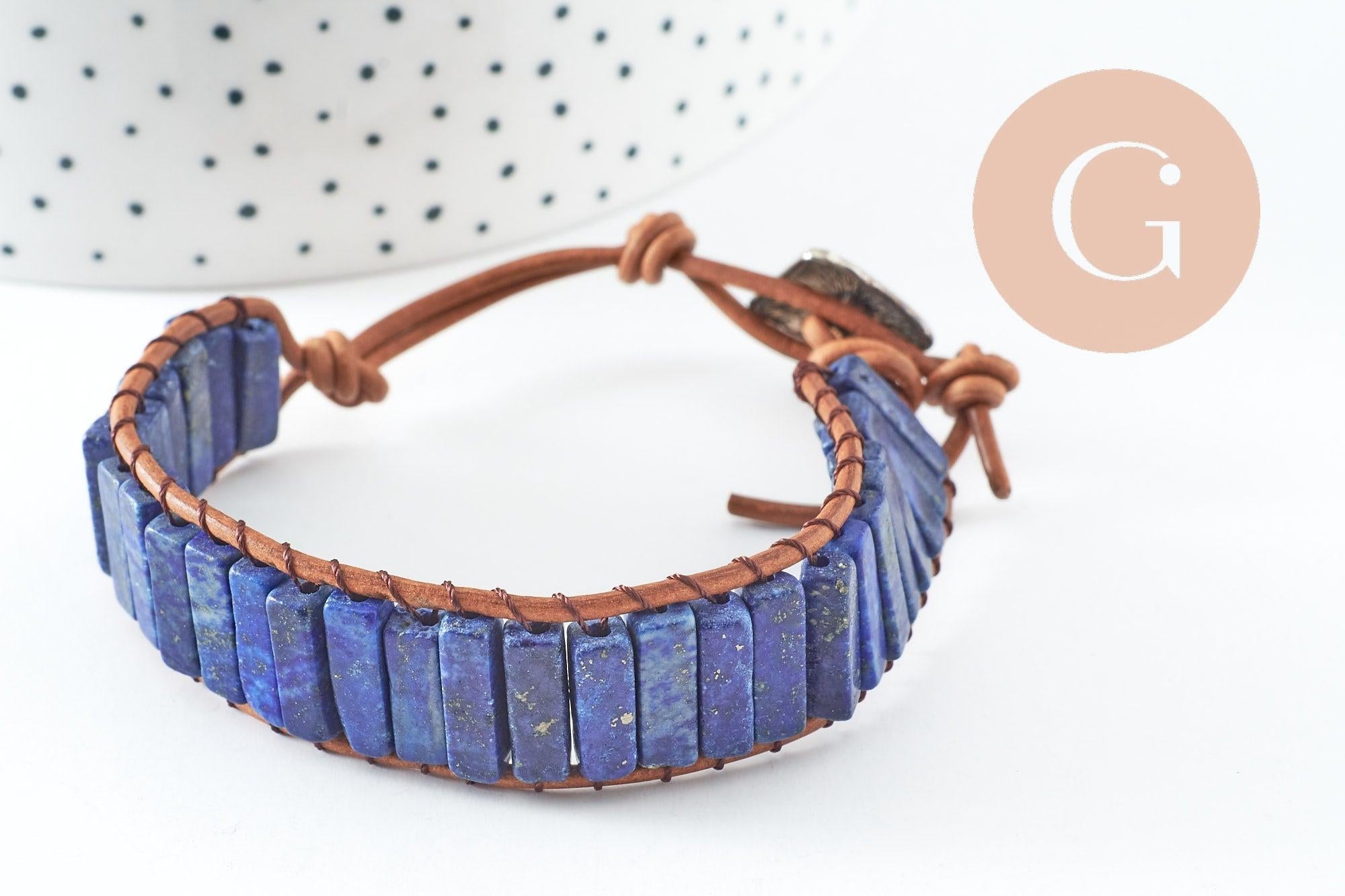 Bring an elegant and spiritual touch to your accessories with this adjustable bracelet in natural lapis lazuli and leather . Measuring between 23 and 28 cm thanks to its adjustable system, this jewel is suitable for all wrist sizes.