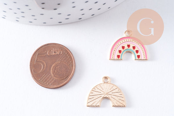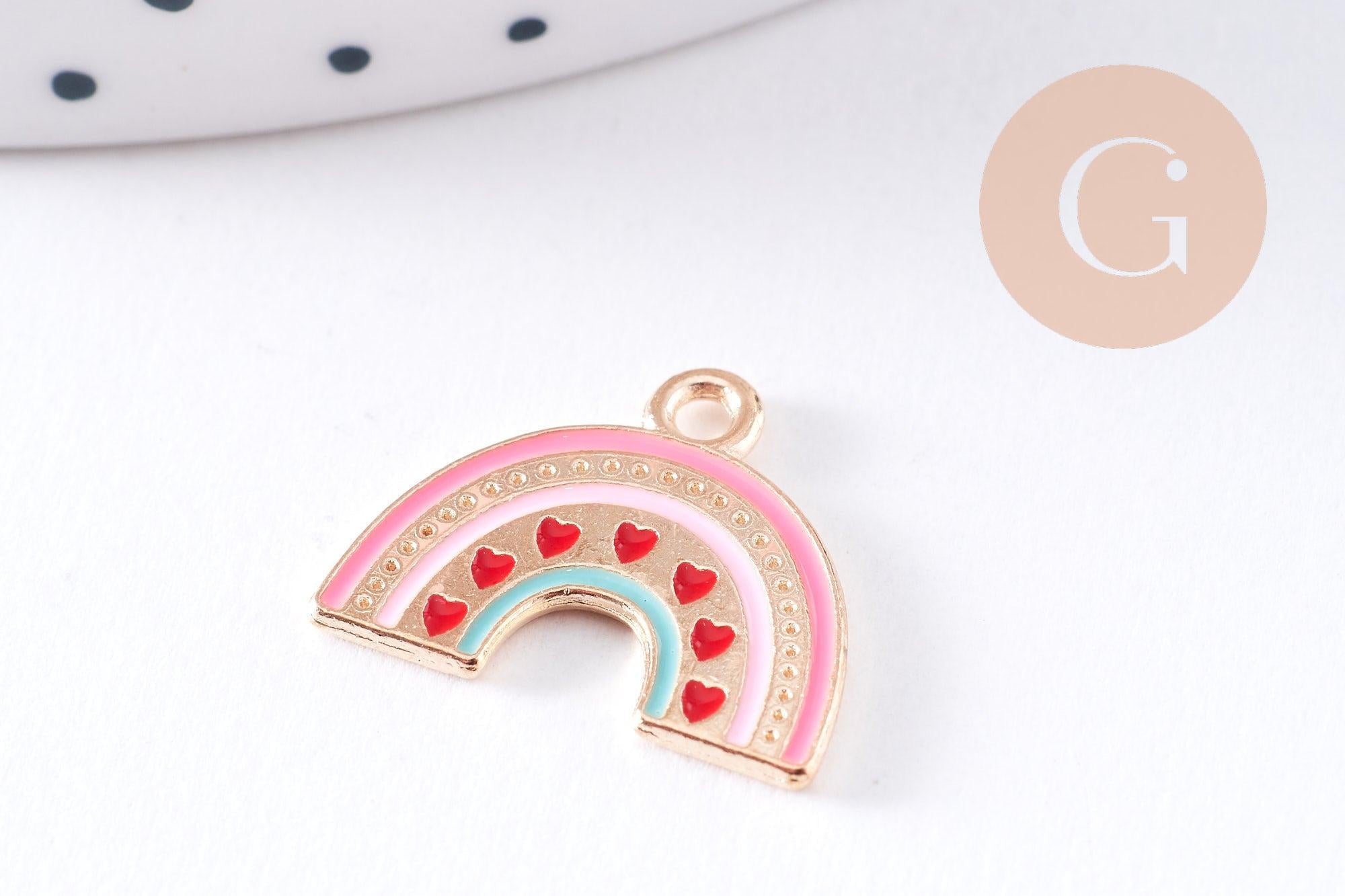Add a touch of soft color and whimsy to your creations with this pink enamel rainbow charm in gold-plated zamac with a light gold finish. Ideal for joyful, childlike jewelry or creations full of tenderness.