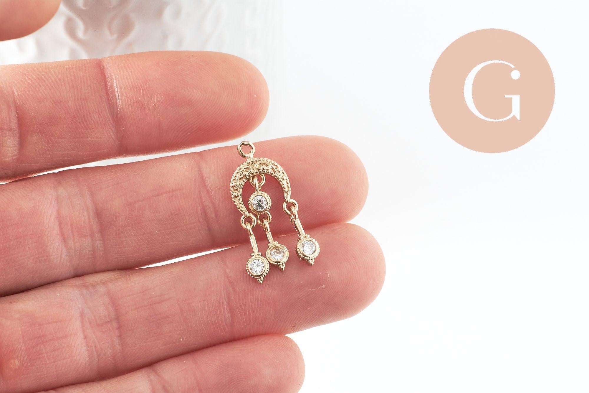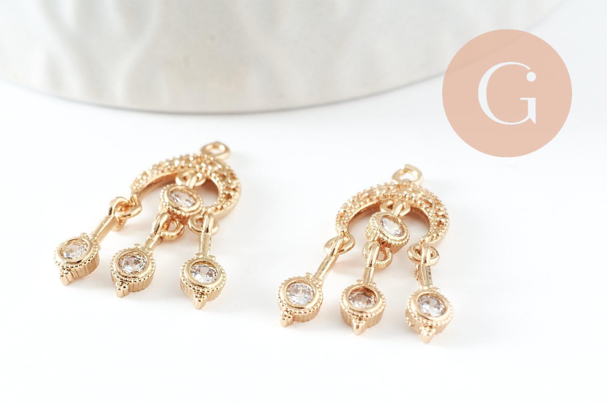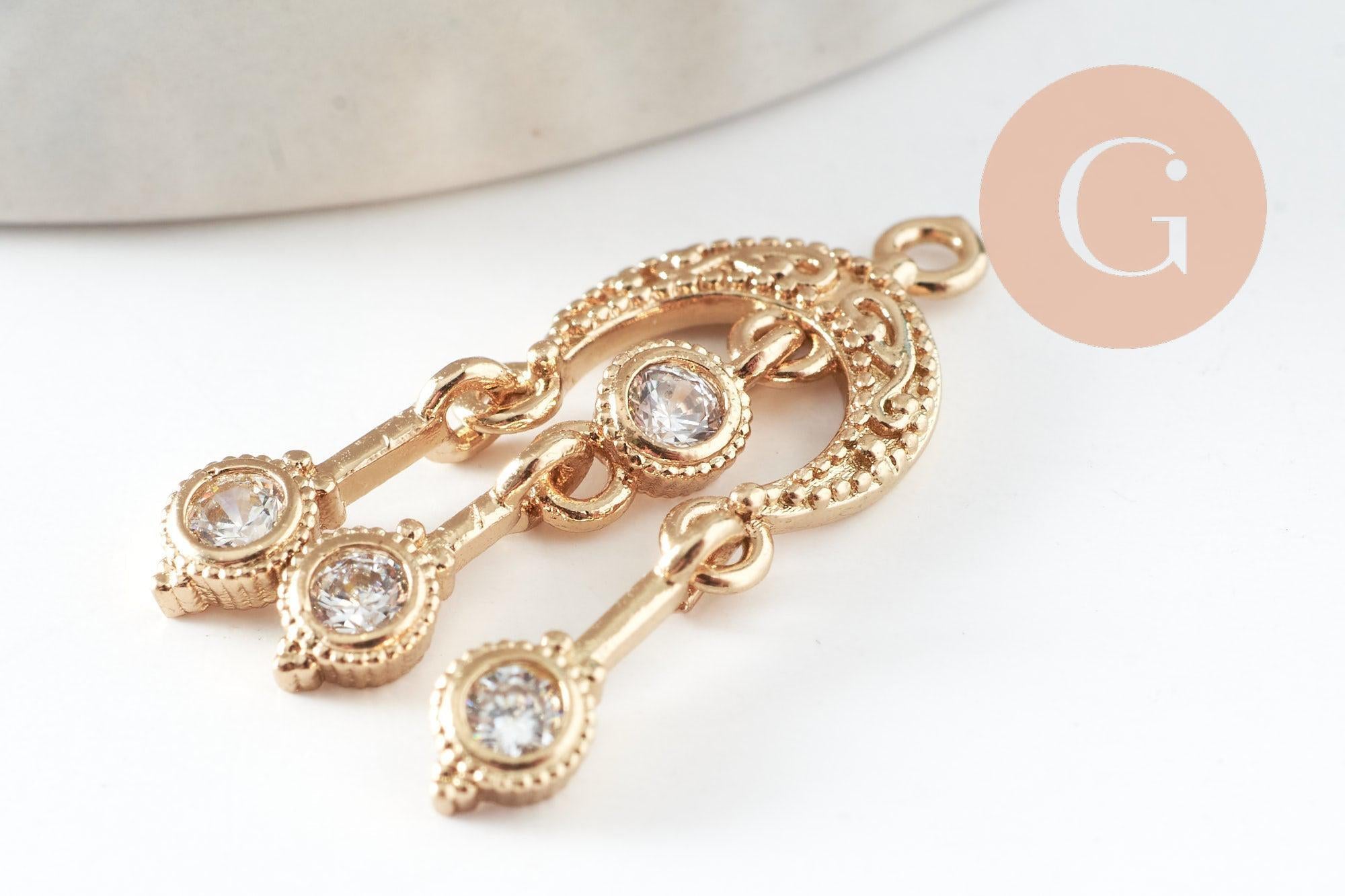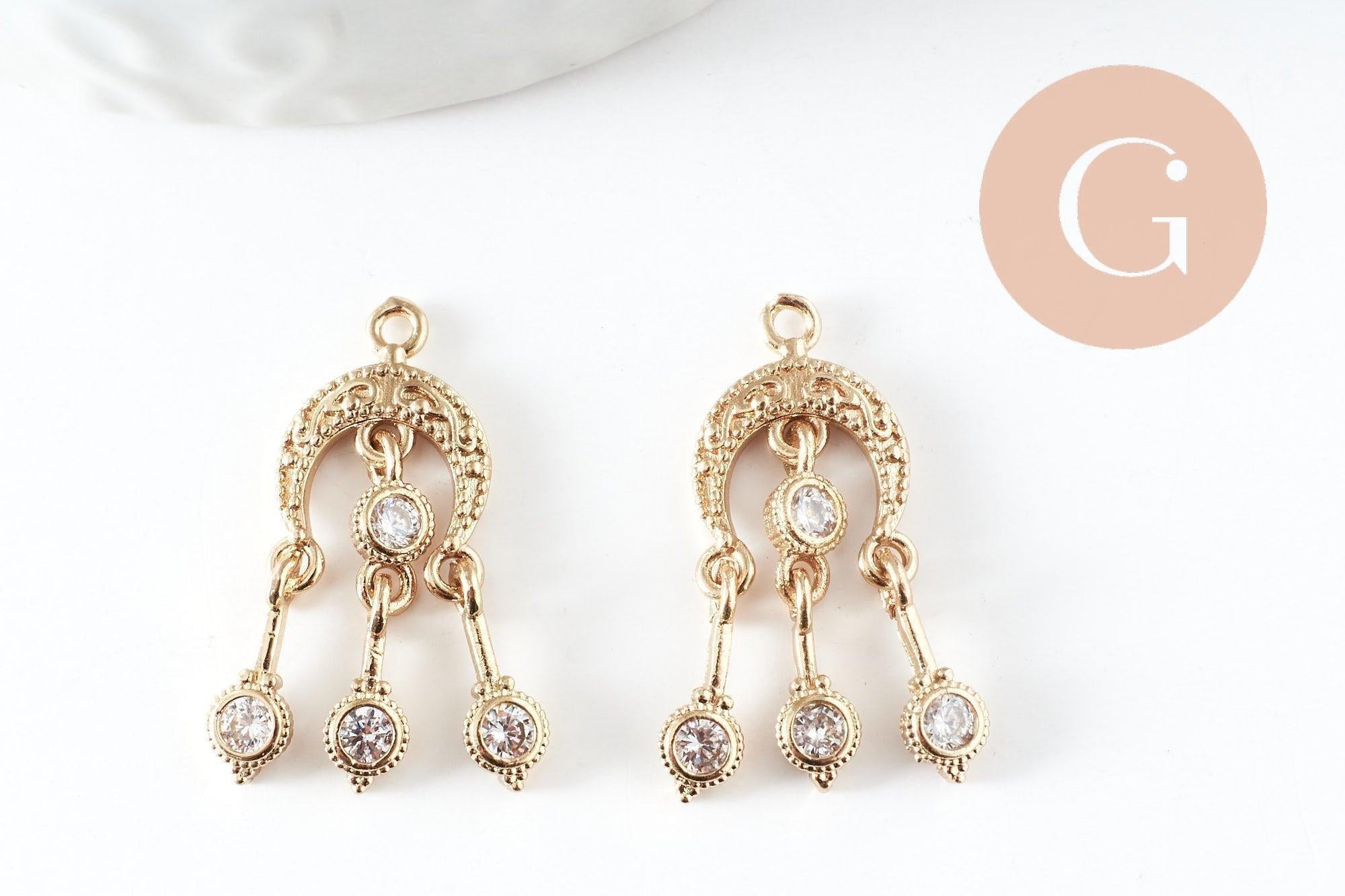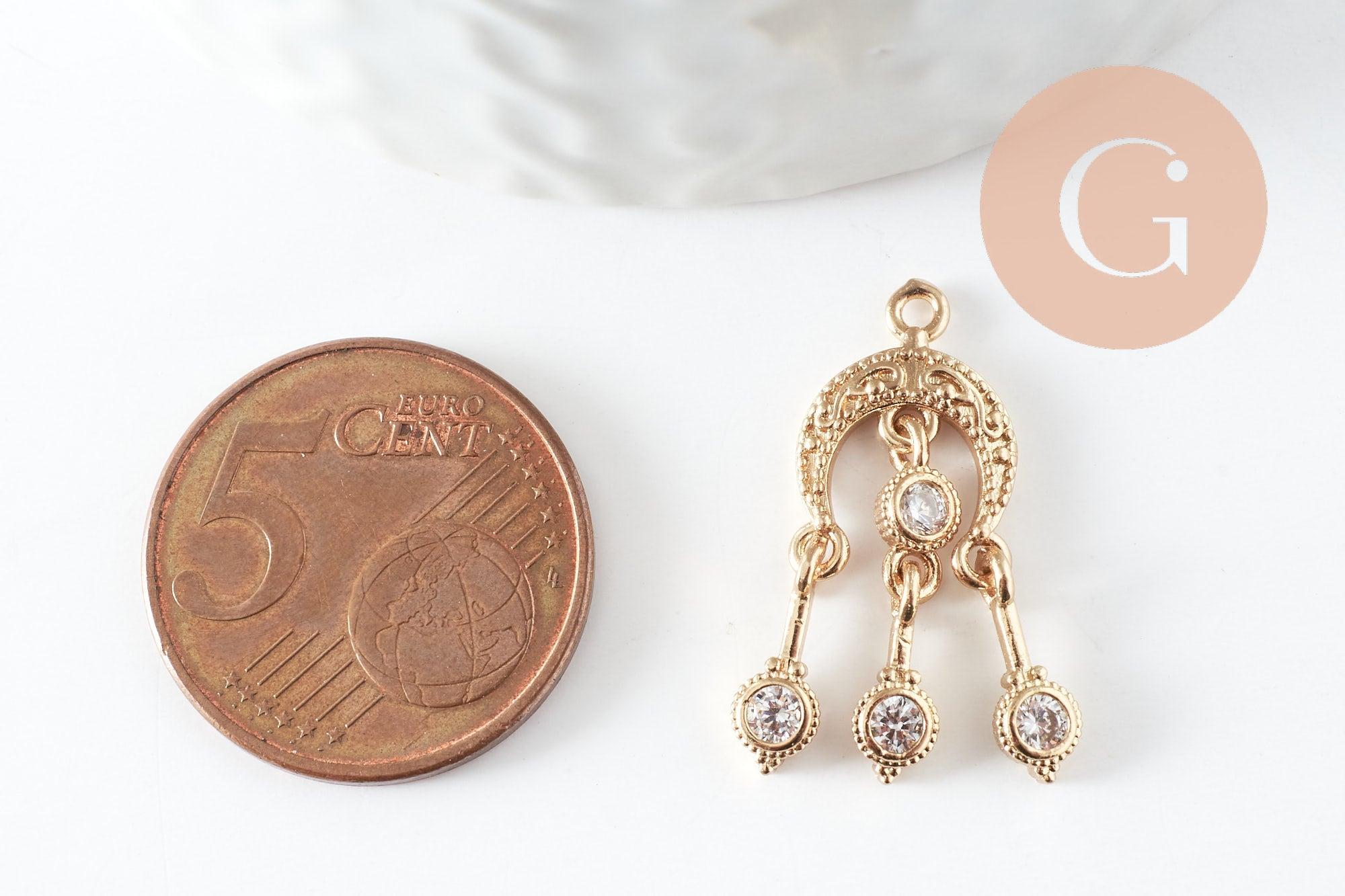 To make magnificent necklaces, earrings and bracelets, adopt this cute padlock, a small love pendant and lucky charm in golden brass, decorated with small shiny white zircons.