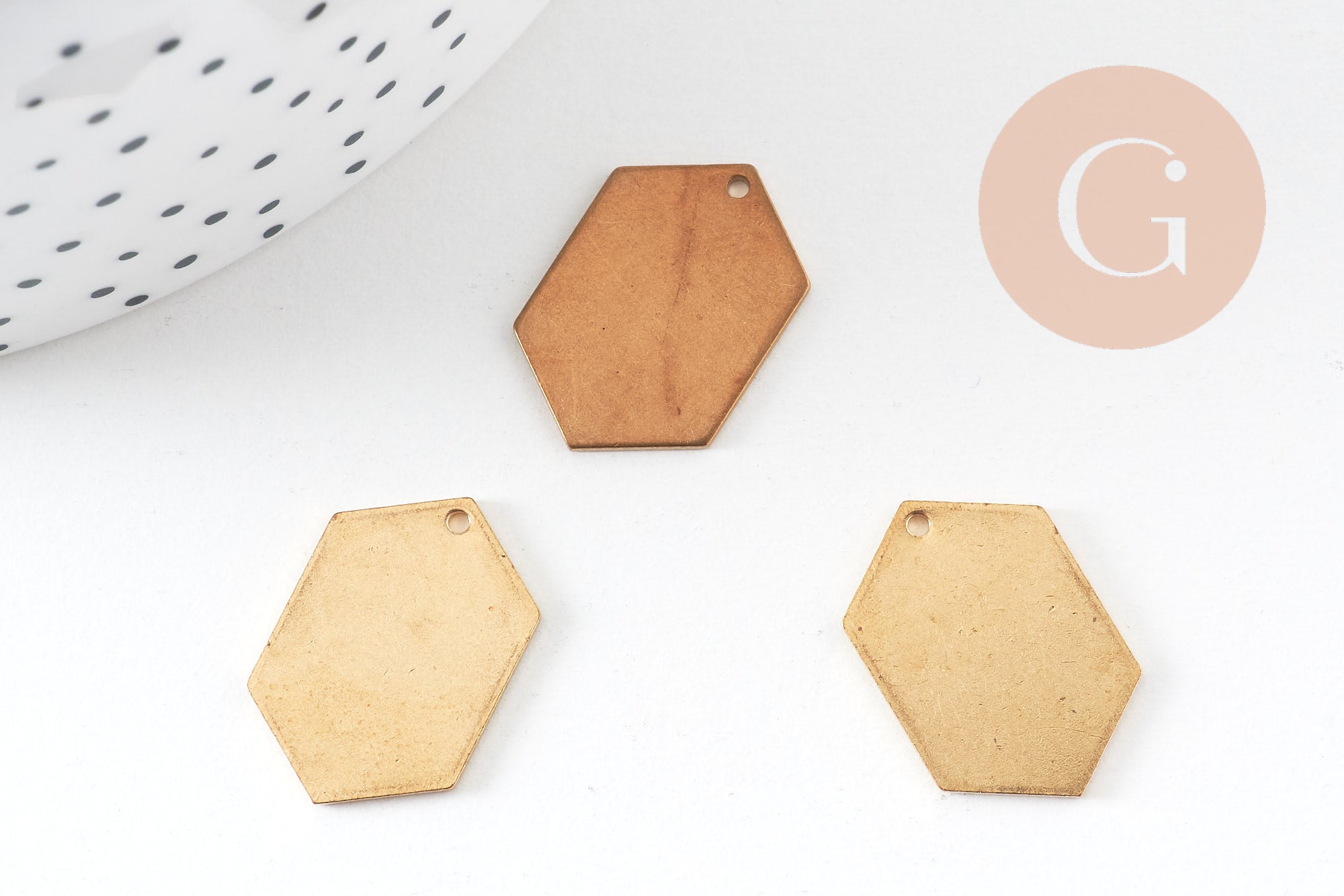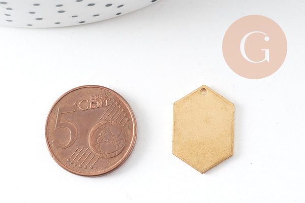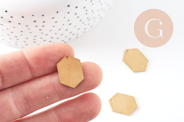 Breloque hexagone laiton brut , fournitures créatives, pendentif sans nickel,creation bijoux, pendentif géométrique,20x14mm, x 5,G3128
