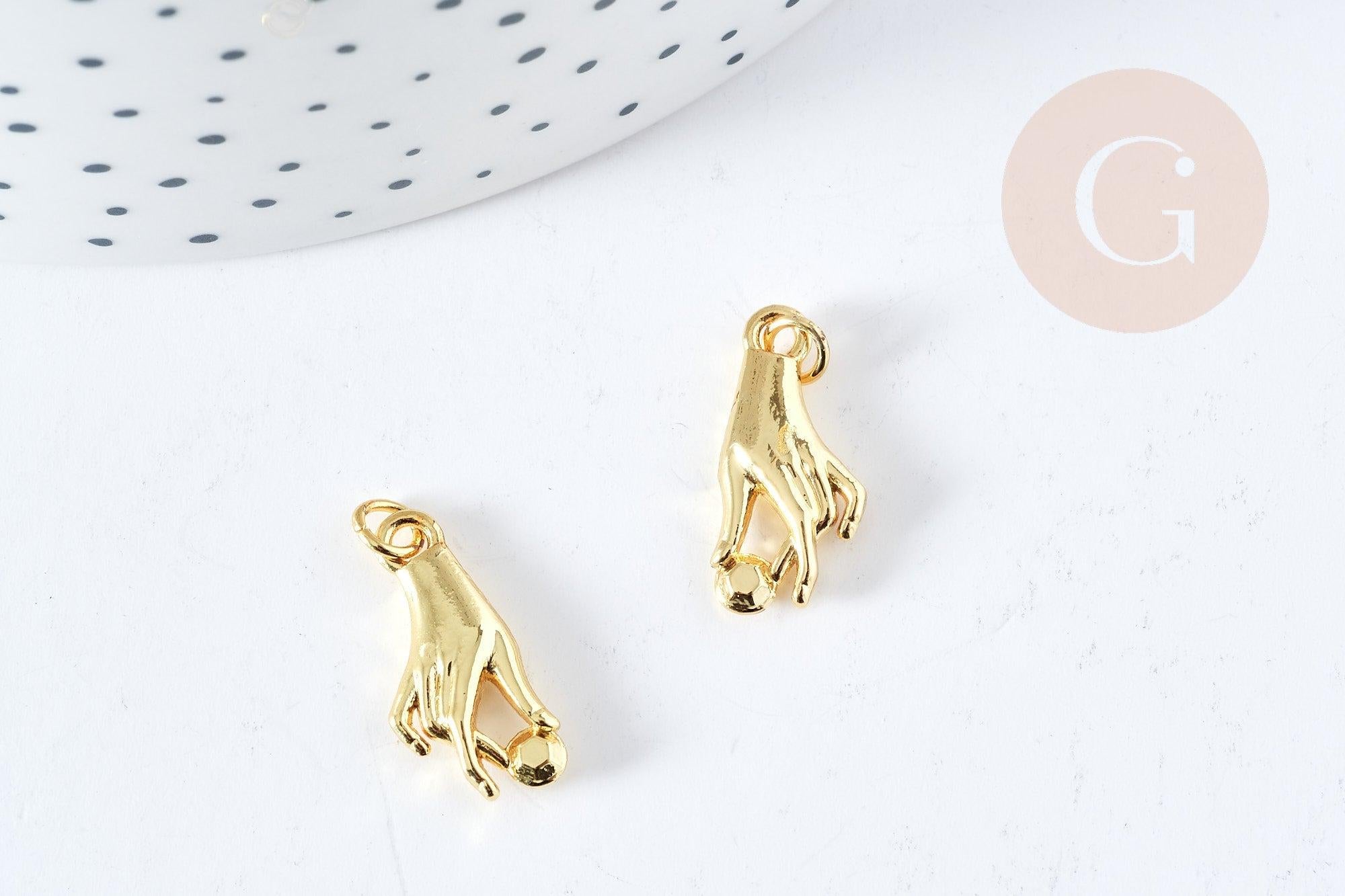 Breloque main zamac doré 18k 18.5mm,sans nickel, pendentif chance, x1 (G8789)
