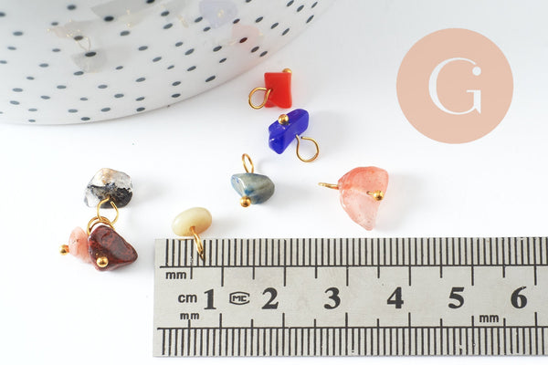 Adopt this small natural stone nugget charm with its gold-plated brass setting. Use it to create a multitude of DIY costume jewelry !