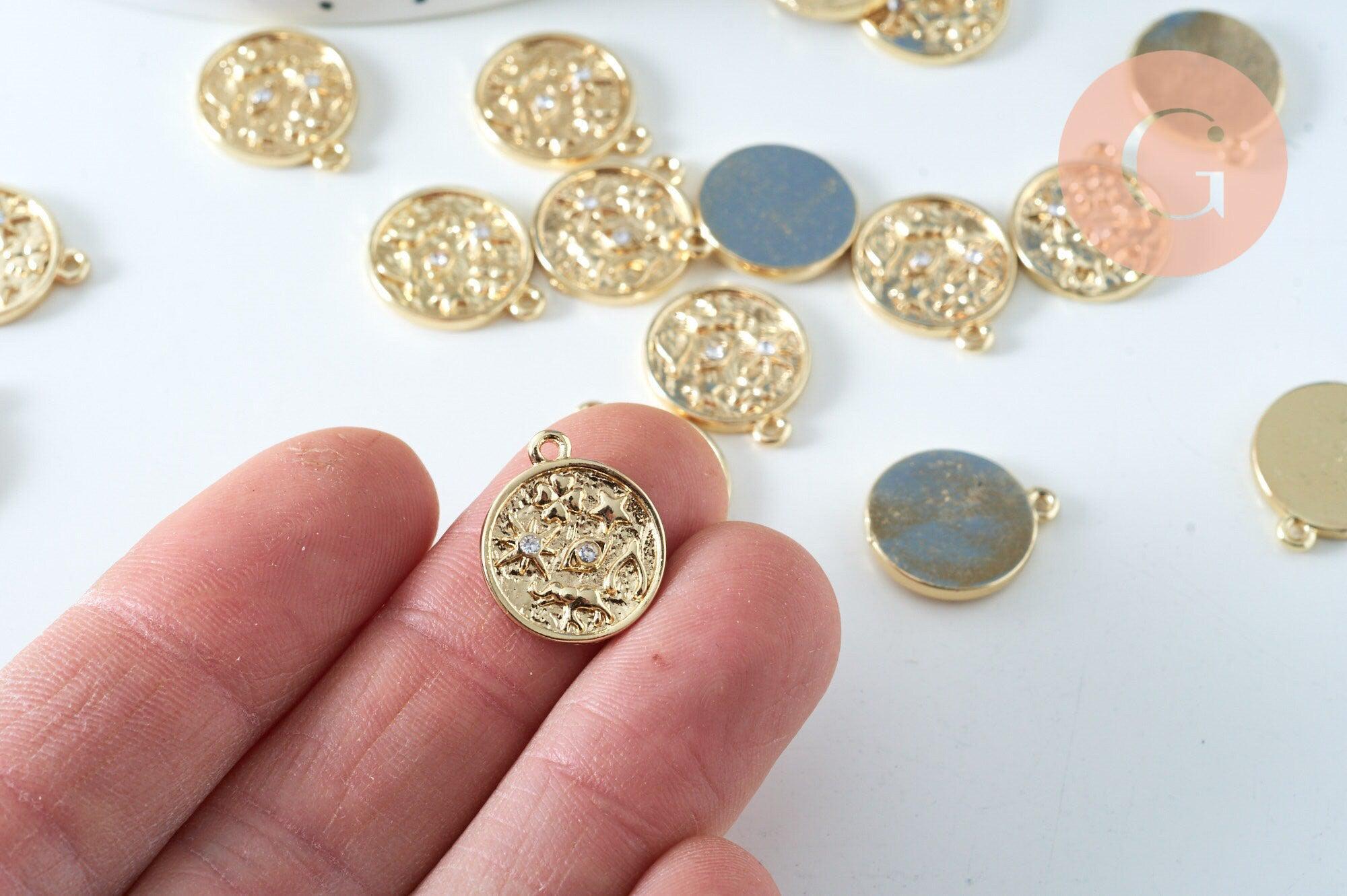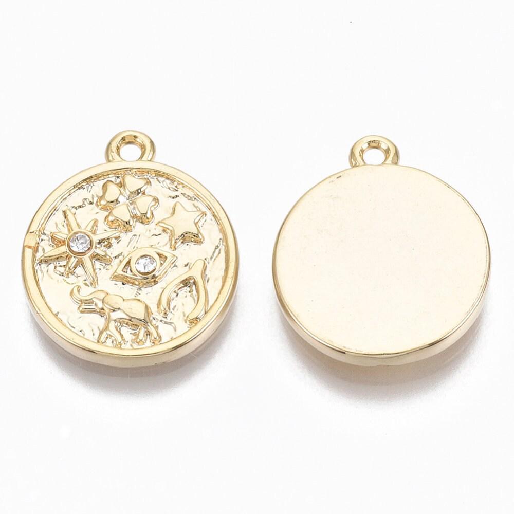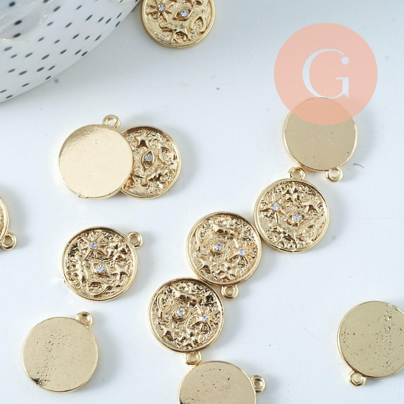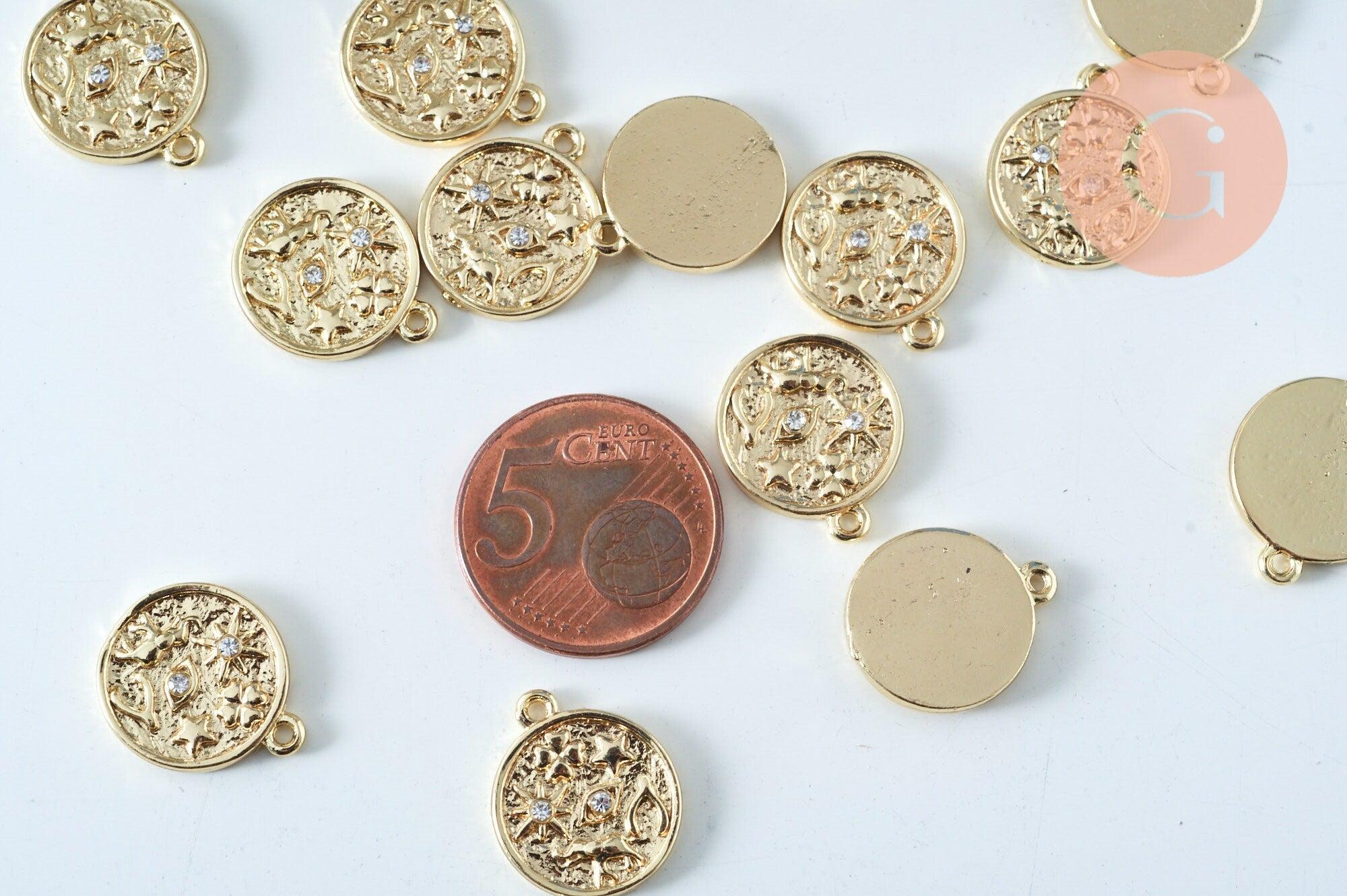 To make magnificent necklaces, earrings and bracelets, this adorable lucky medal in 18K gold-plated zamac , decorated with mystical symbols such as the elephant, a star, clover, eye...