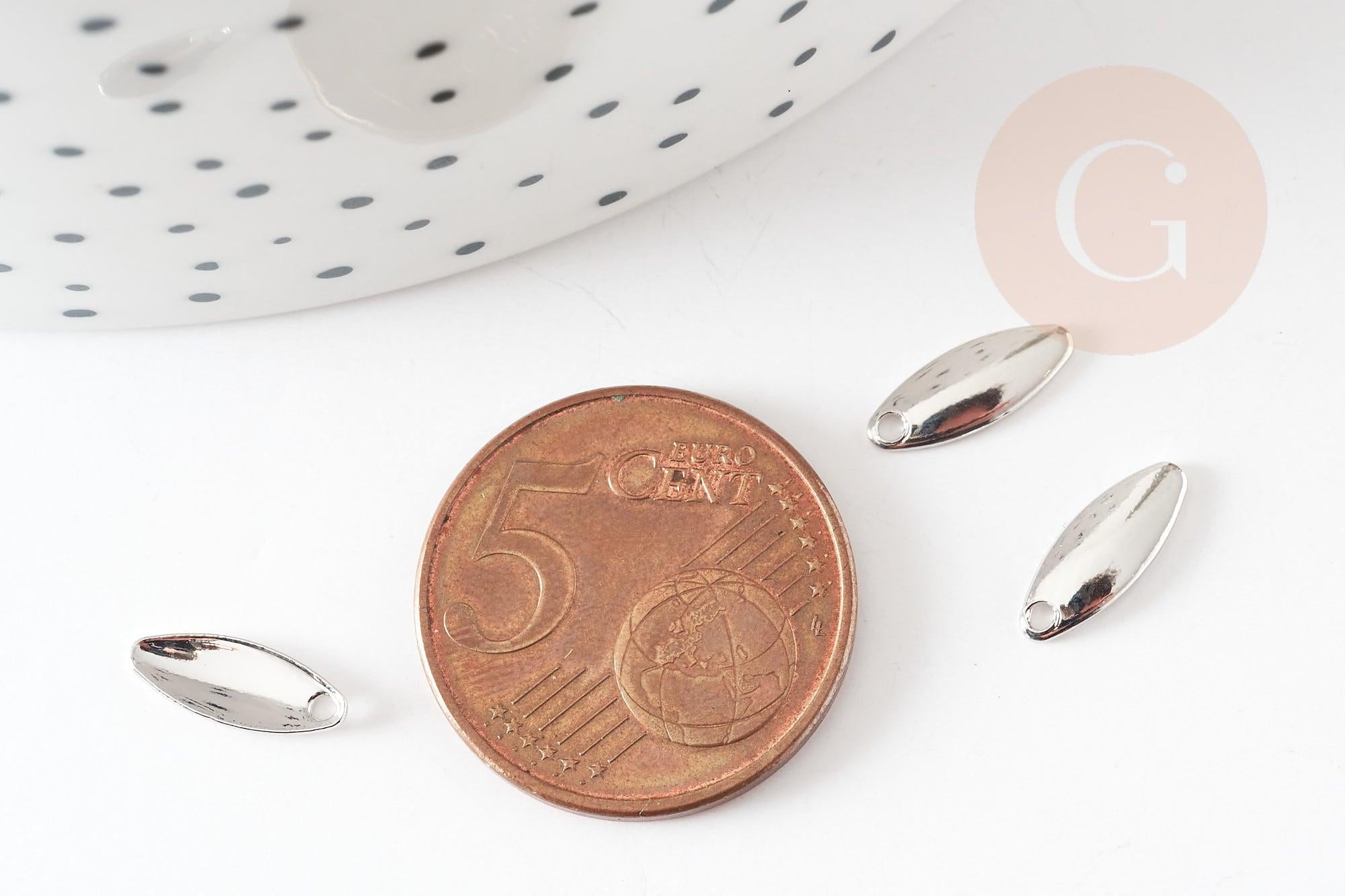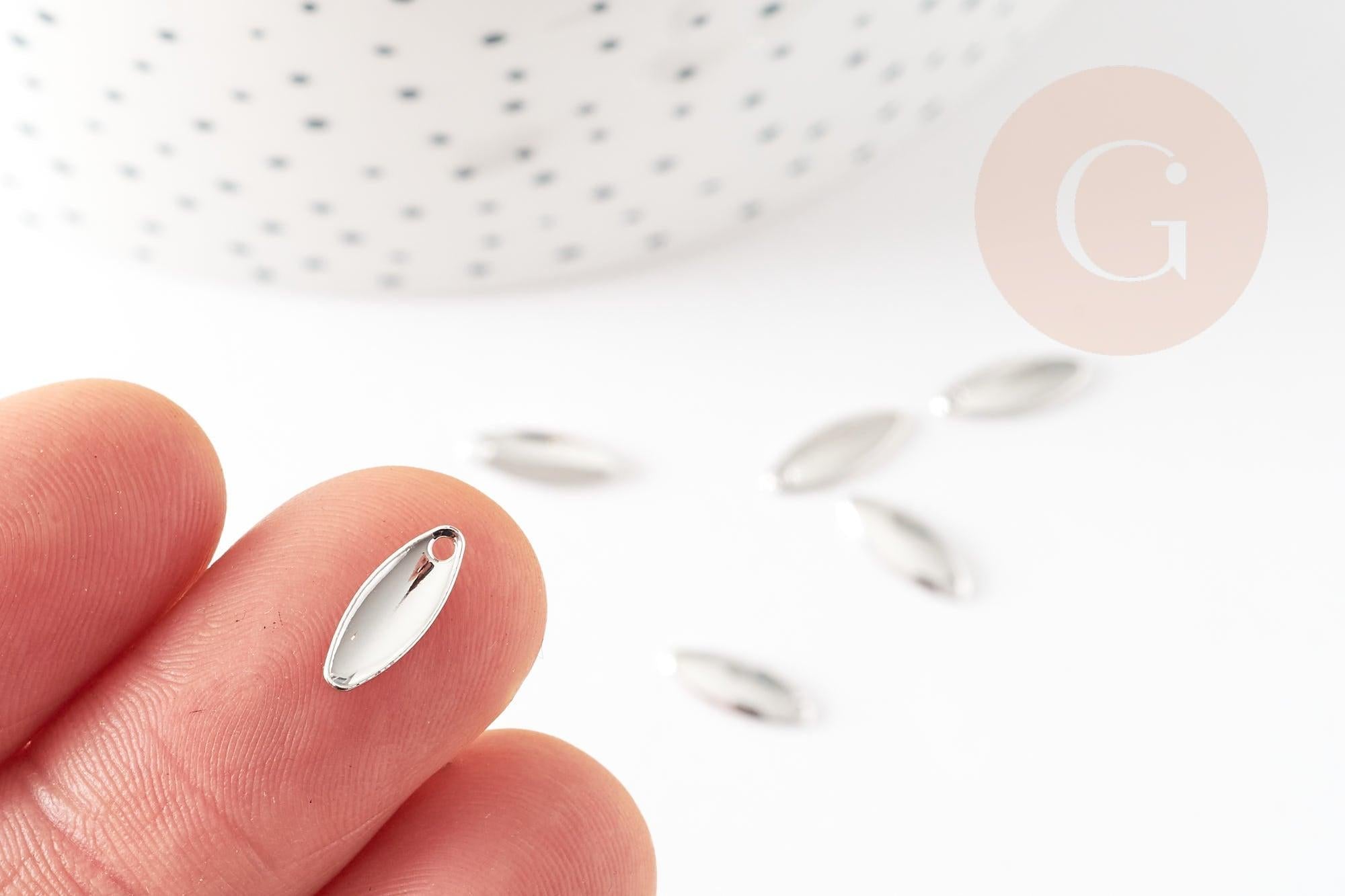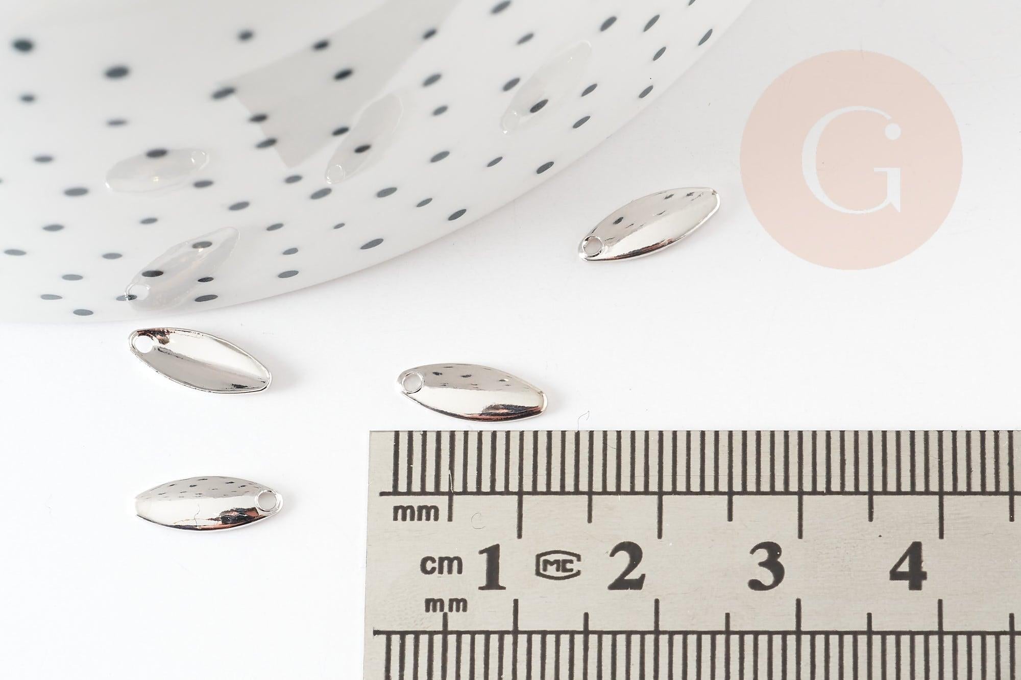 Breloque ovale cuivre or blanc rhodium 10mm,pendentif argent pour création bijoux DIY, x4 G9247