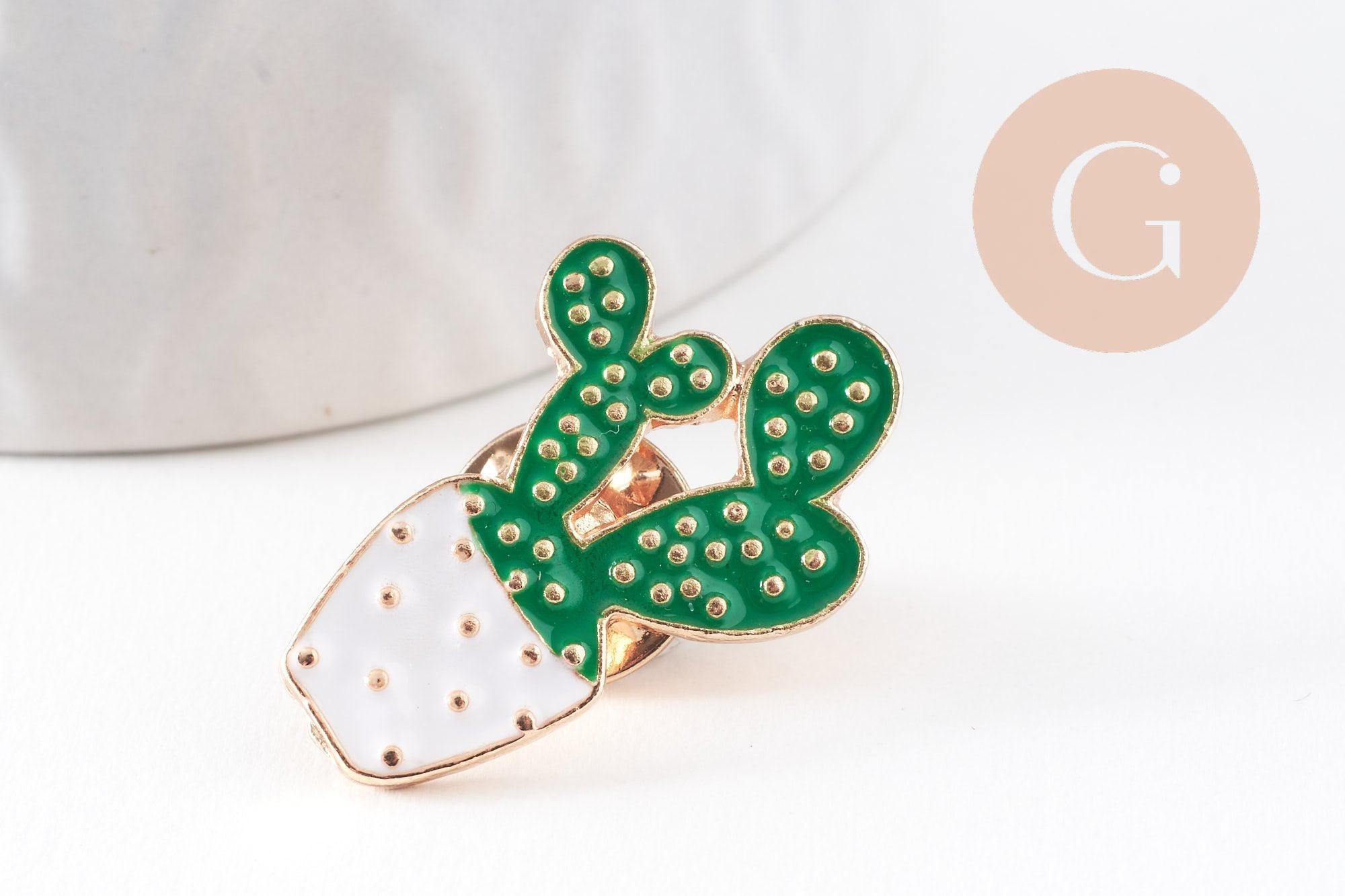 Add a spicy touch to your outfits with this superb cactus-shaped brooch . Made of gold-plated zamac, this pin features a delicate green enamel that enhances its details, bringing an elegant and fun touch to your look.