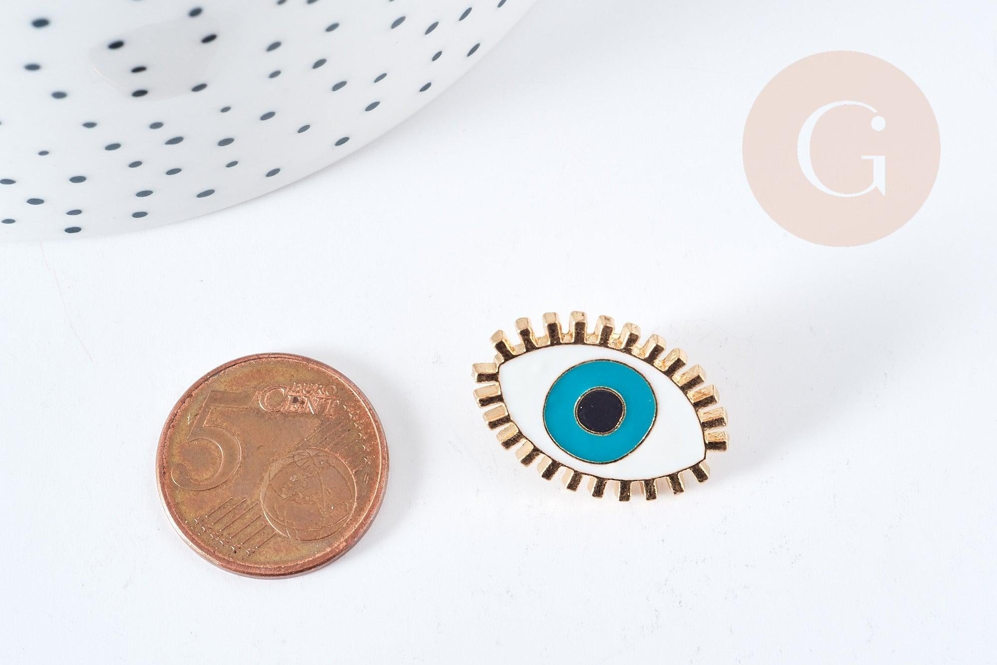 A lovely protective eye pin in gold zamac, it will be perfect on a small jacket, a shirt or even a coat to bring you luck every day.