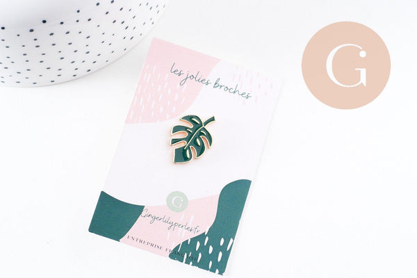 Gingerlily invites you to fall in love with this delightful brooch / pin representing a Monsterosa plant leaf , in gold zamac and green colored enamel.