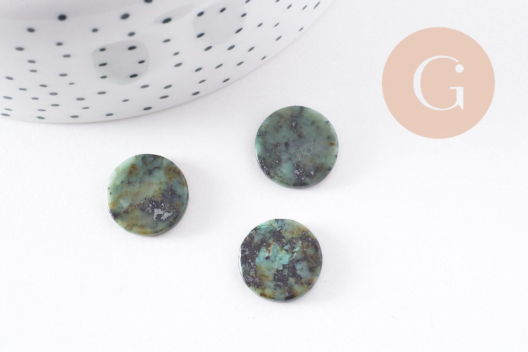 Cabochon disque rond turquoise africaine naturelle 15mm, x1 (G10213)