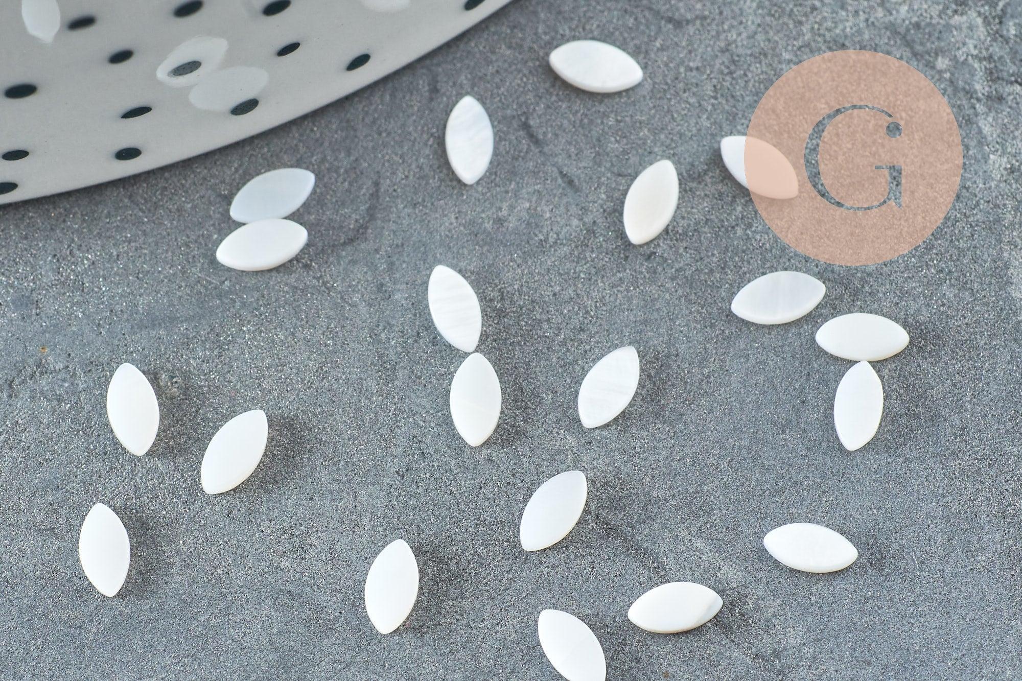 To customize your jewelry and other textile or soft leather accessories, fall for these delicate natural white mother-of-pearl cabochons, in the shape of an eye.