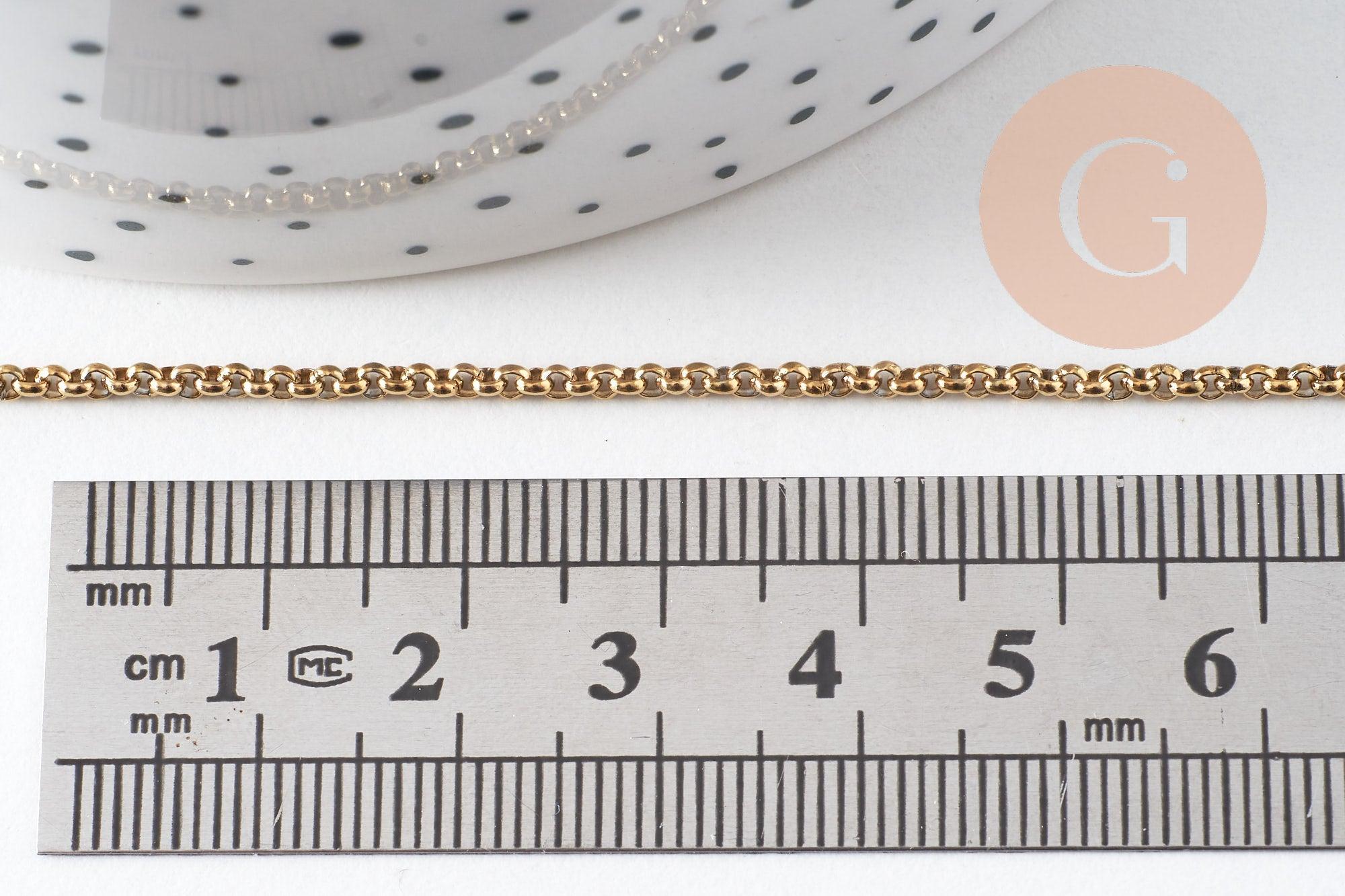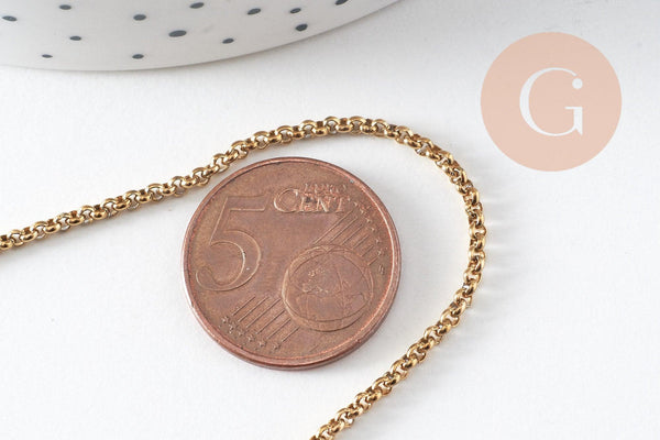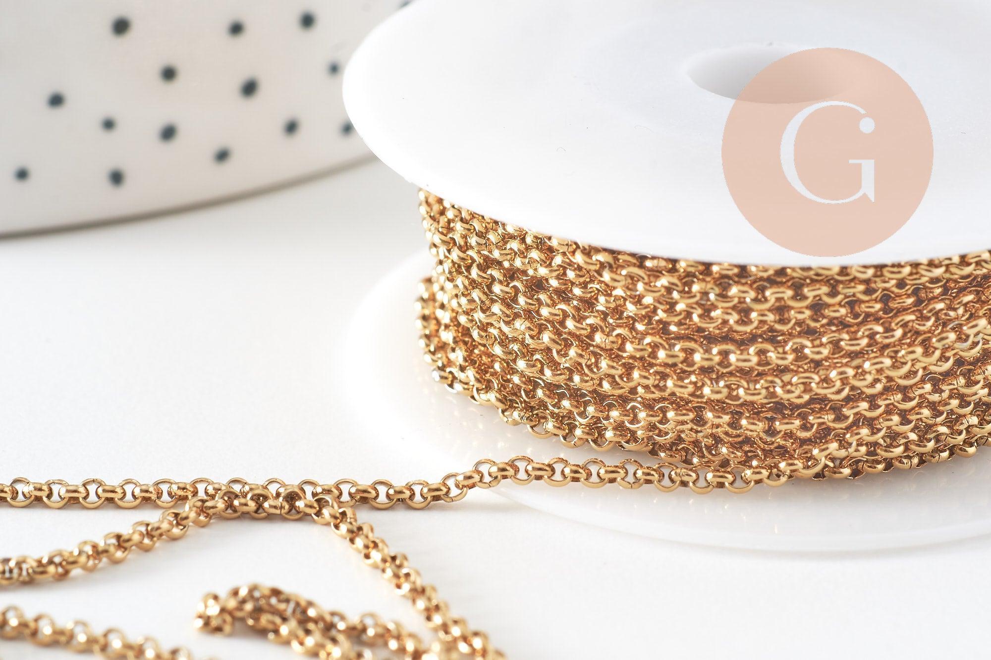 Add a touch of timeless elegance to your creations with this rollo link chain in 304 stainless steel, 18K gold plated by Ion Plating (IP) .