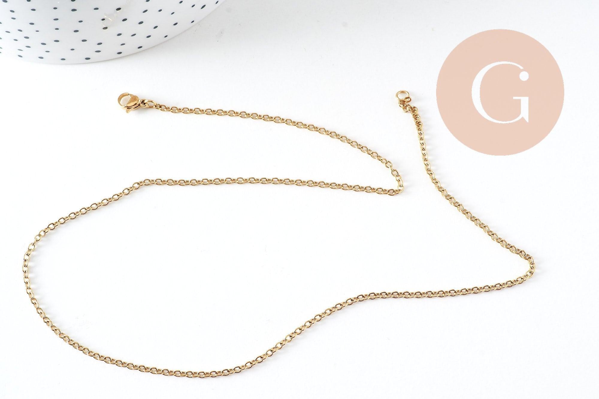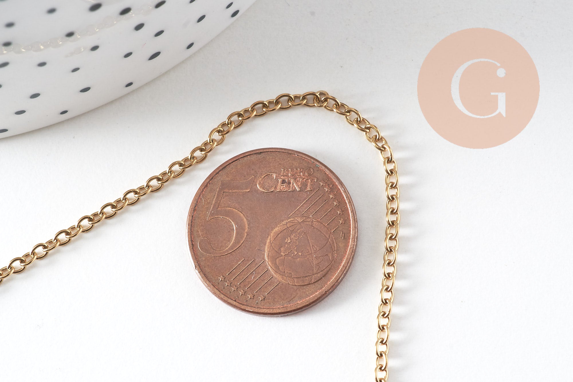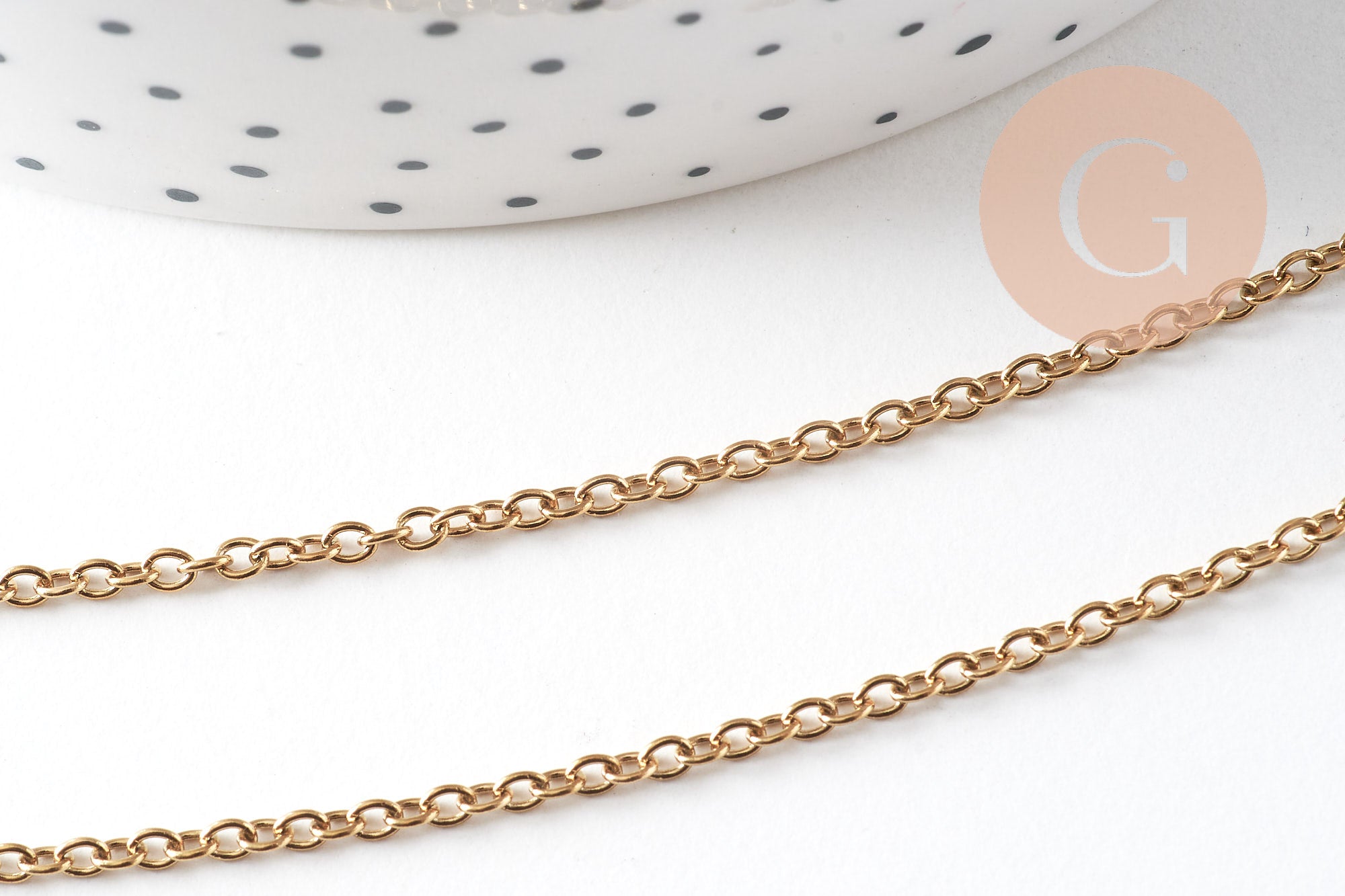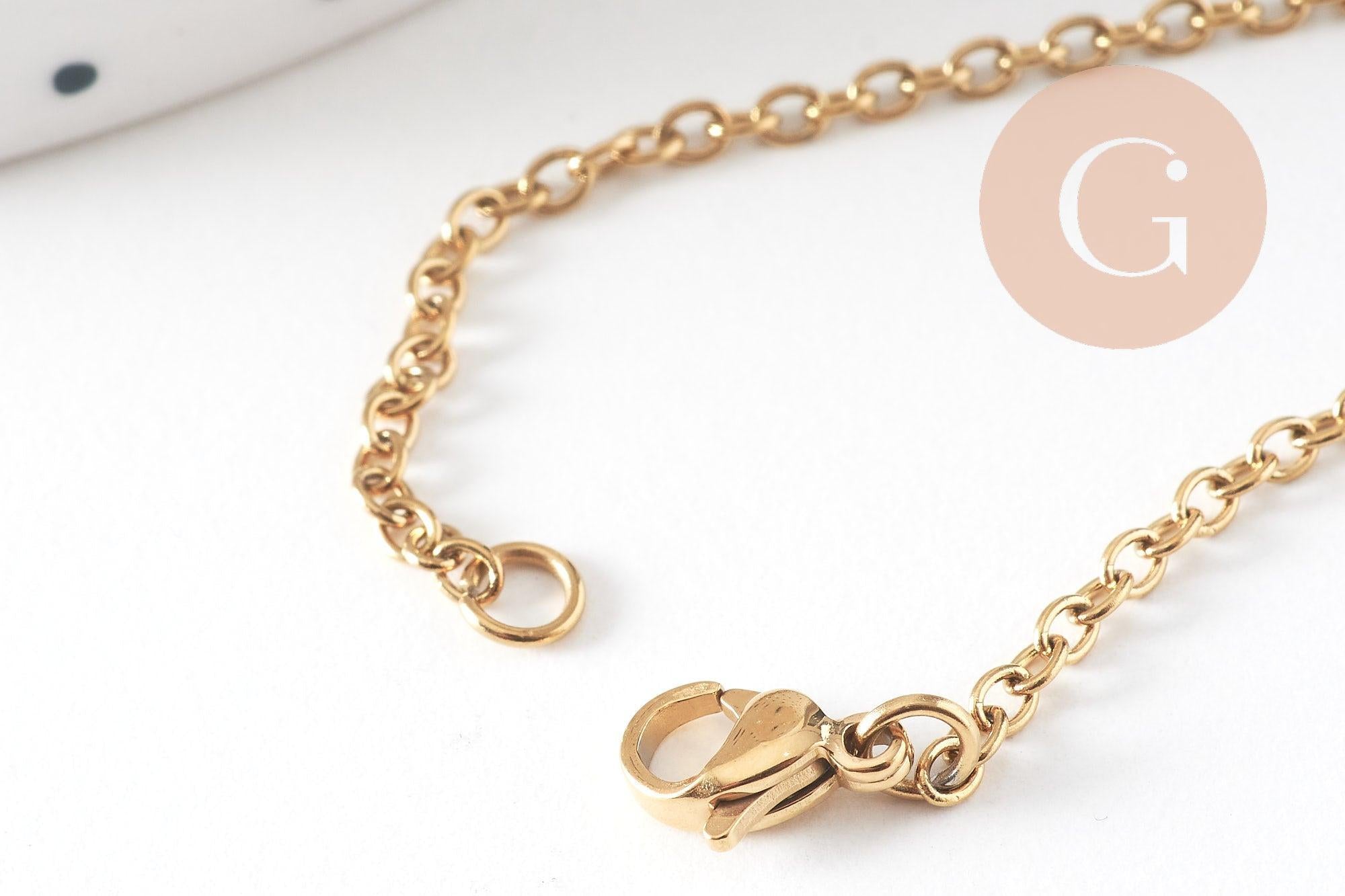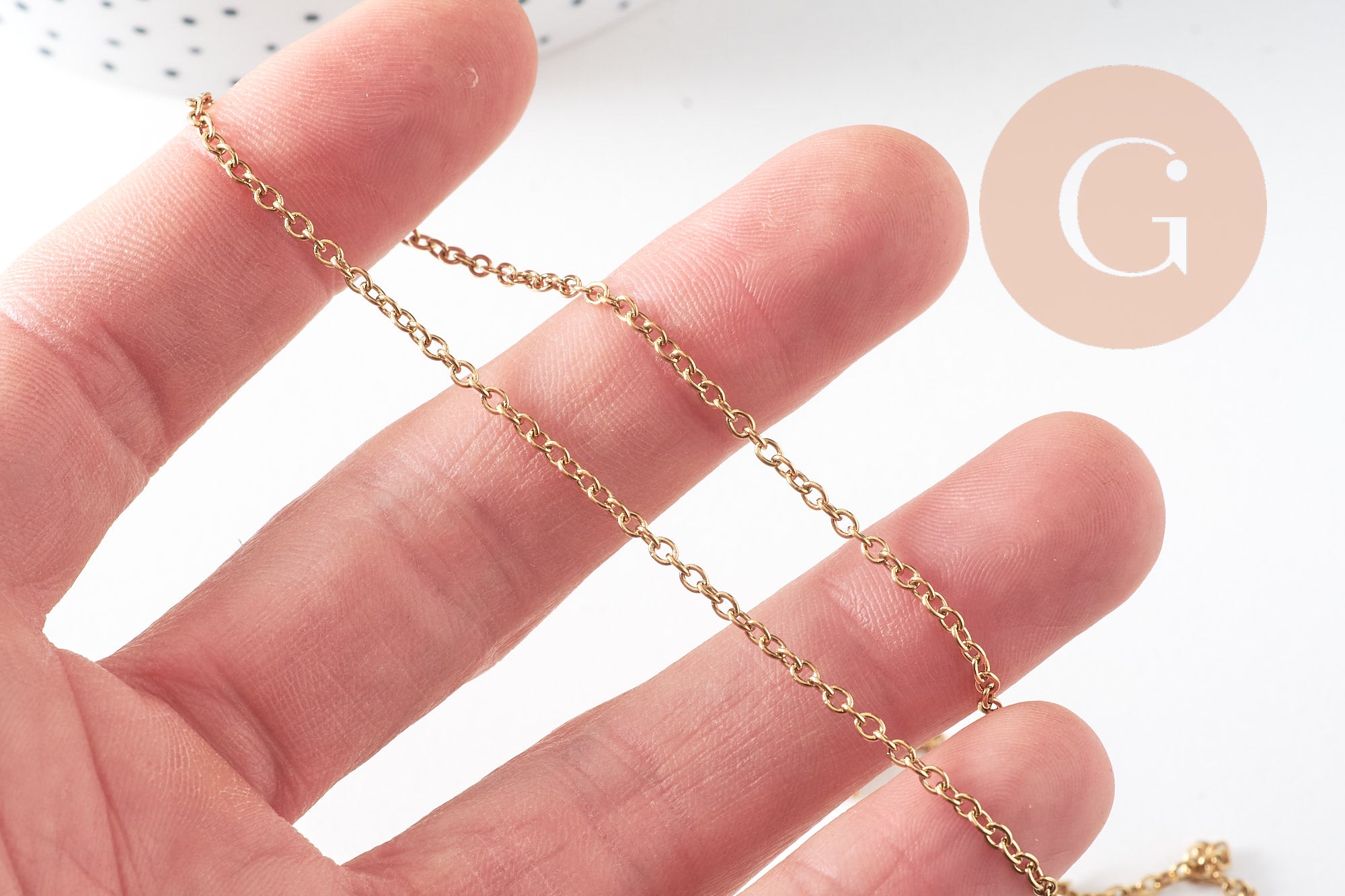 Add an elegant and lasting touch of gold to your creations with this full chain in IP 14K gold-plated stainless steel , featuring a curb link design. With a pre-attached clasp, it's ready to use for your pendants, charms, or DIY necklace projects.