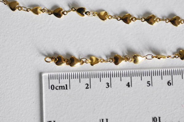 A fancy chain with small hearts in 14-carat gold color sold complete with clasp.