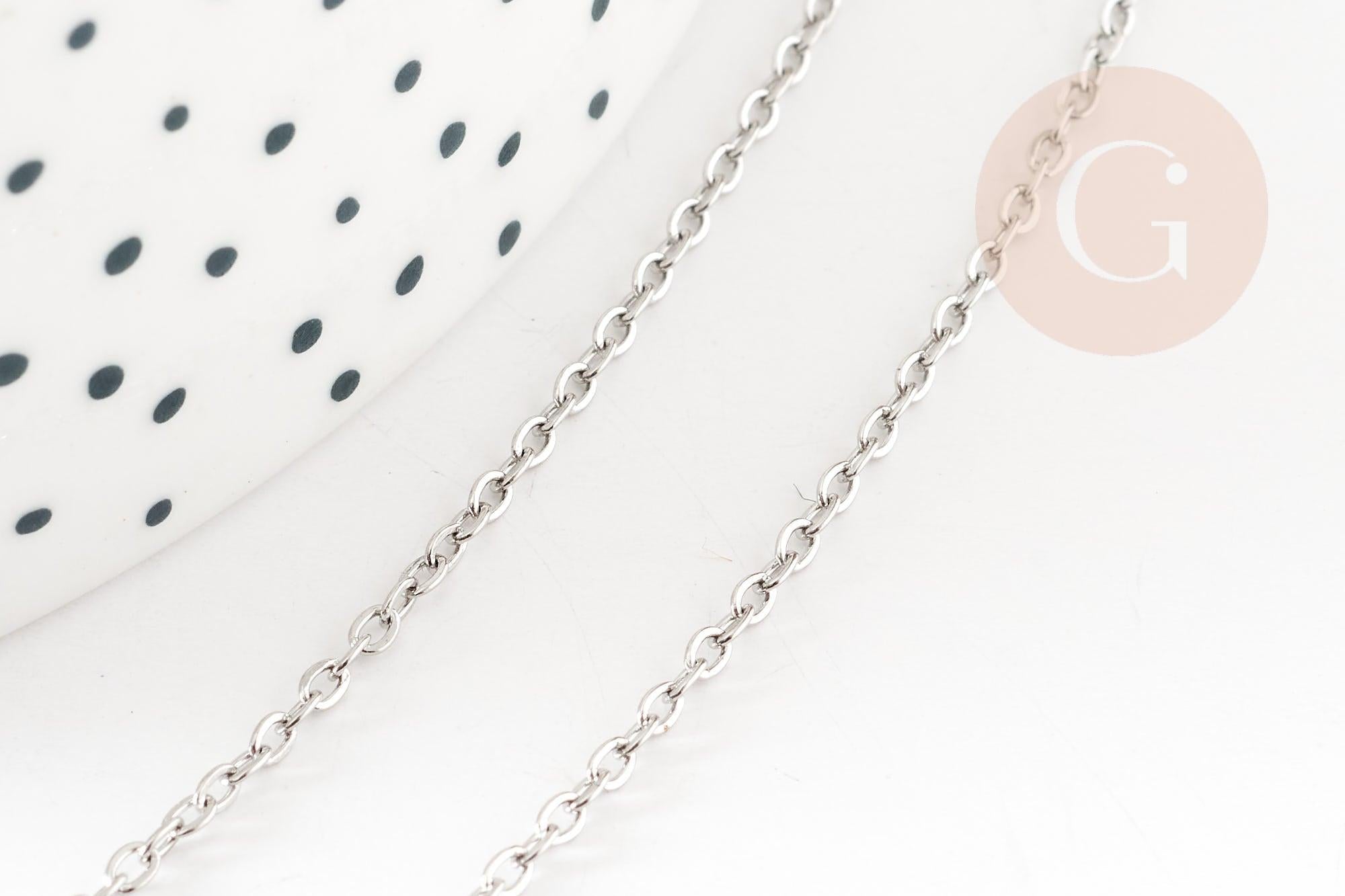 Adopt this elegant complete stainless steel convict chain, 1.5mm wide and 45cm long . This silver steel chain is ideal for creating DIY necklaces and jewelry.