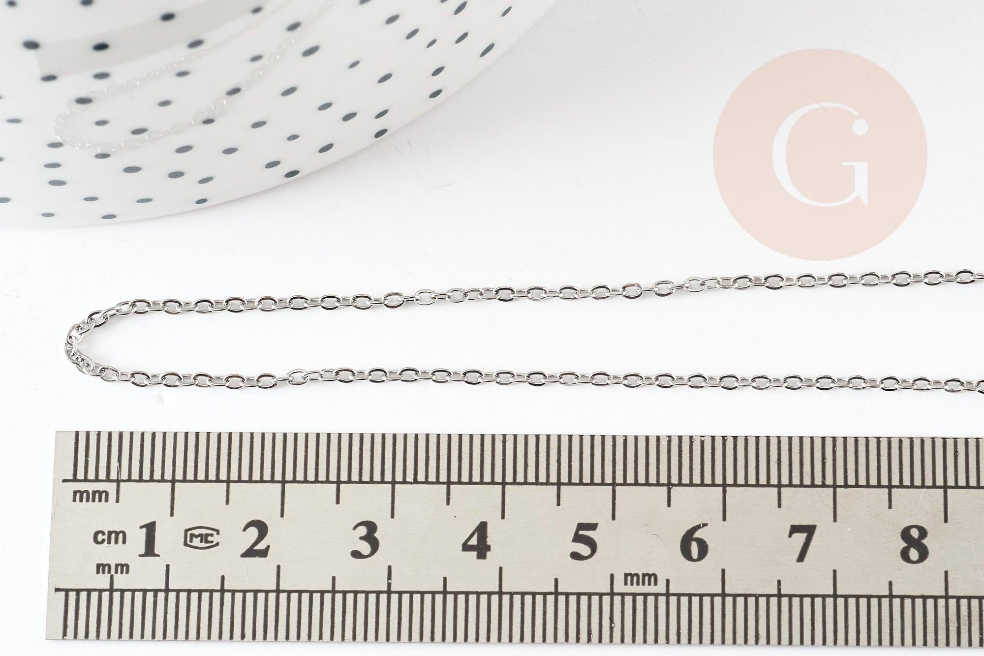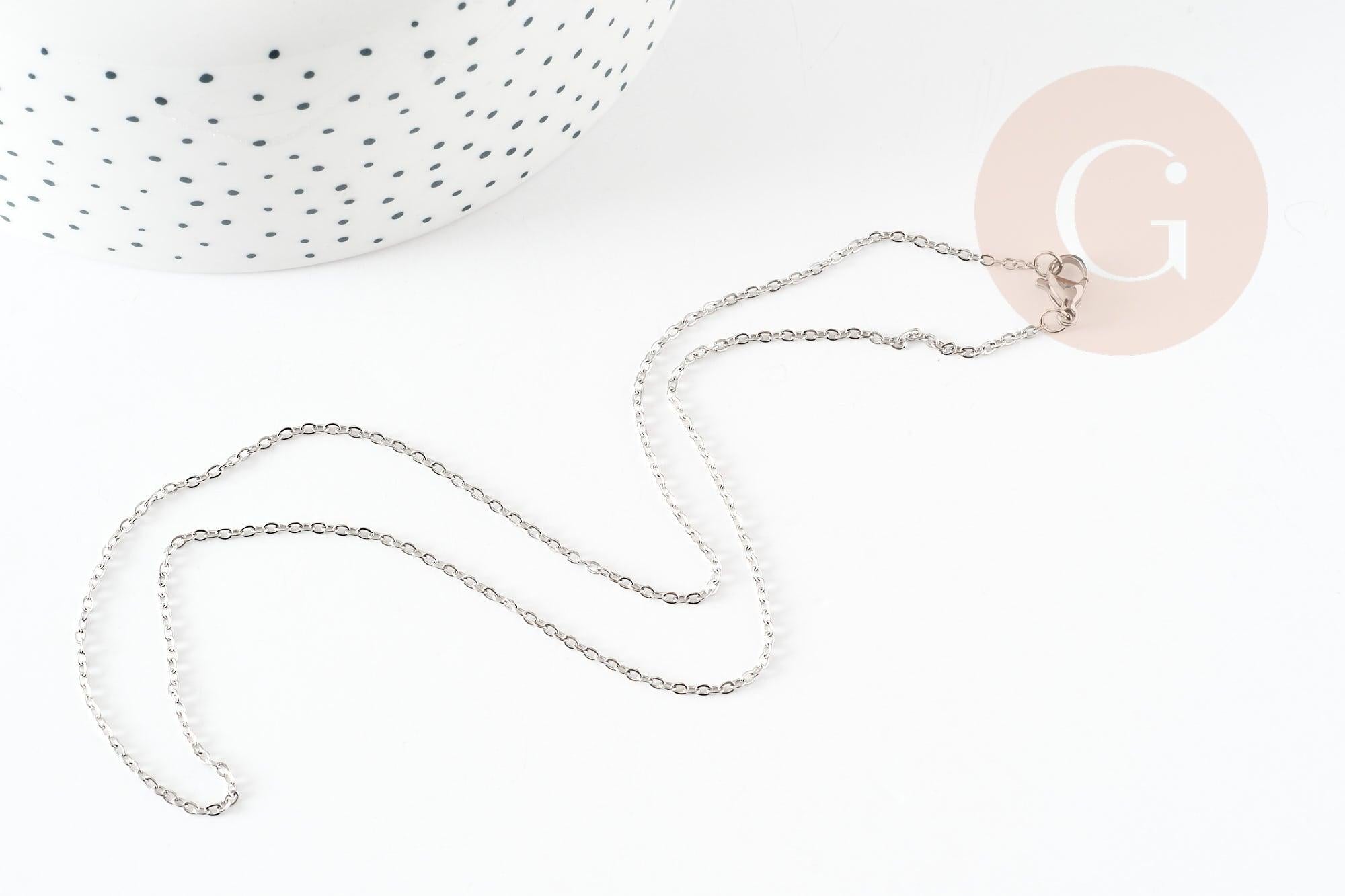 Complete stainless steel curb chain 1.5mm-45cm, silver steel chain with clasp, silver necklace chain, x1 G9302
