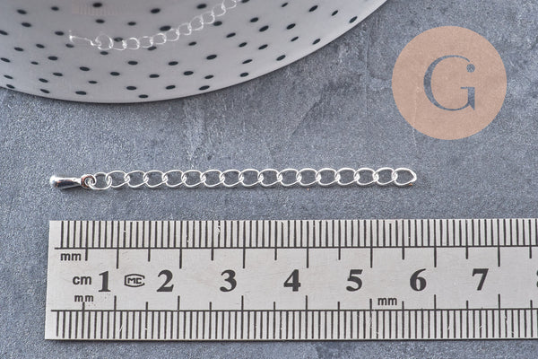 The silver-plated stainless steel extension chain is the essential accessory for easily adjusting the length of your handmade necklaces and bracelets. Thanks to its integrated charm, it adds an elegant and professional touch to your jewelry while ensuring optimal comfort for the wearer.