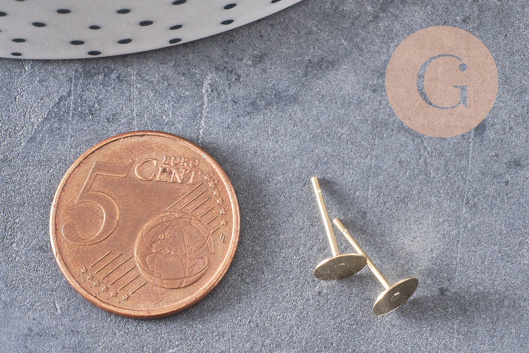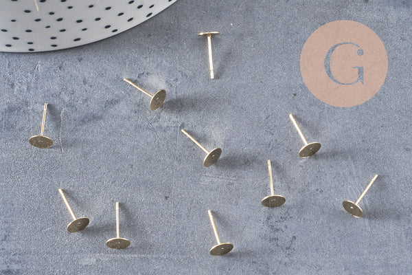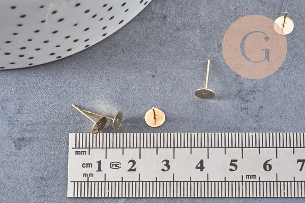 golden ear studs with gold steel tray, creative supplies, earrings, jewelry creation, pierced ear, diameter 6mm, set of 10