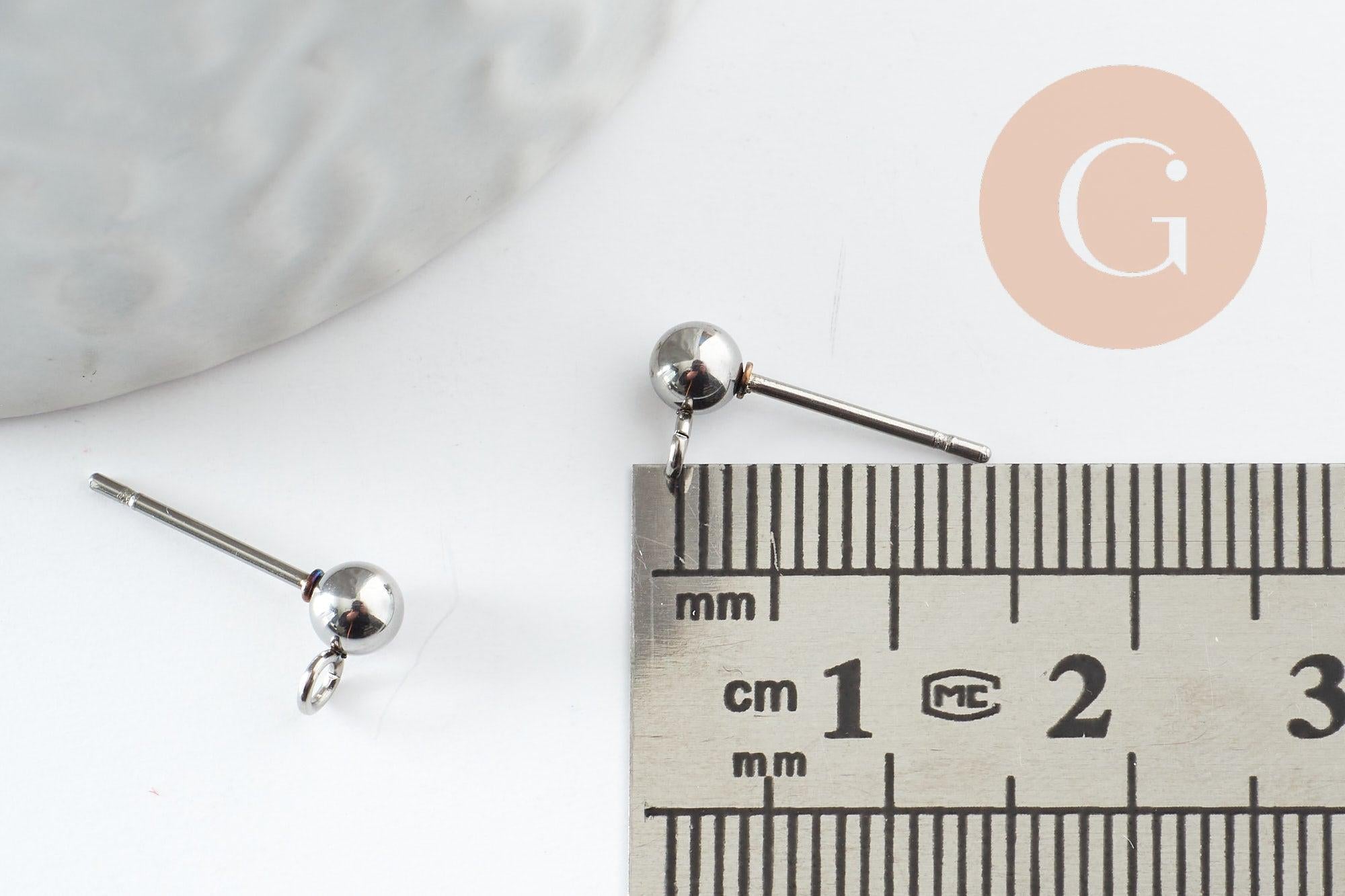 Clous puces oreille boule acier 304 inoxydable platine avec anneau 15mm, x10 (G9646)