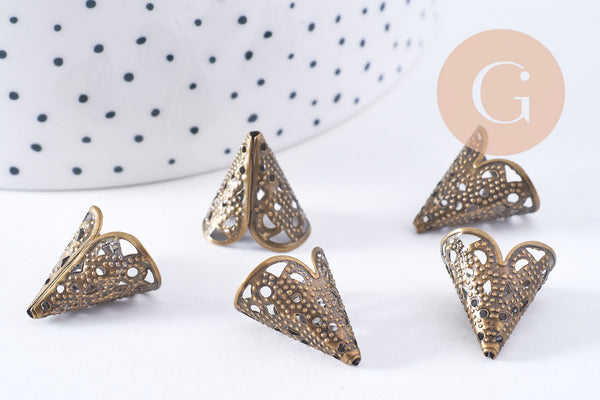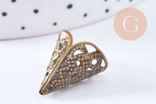 Give your jewelry an elegant, vintage finish with these openwork flower-shaped collar cones in bronze metal . Their lace style makes them a delicate accessory for adorning beads, tassels, or chain fringes.