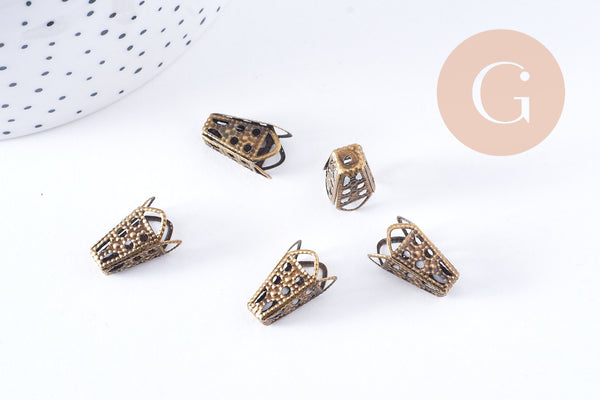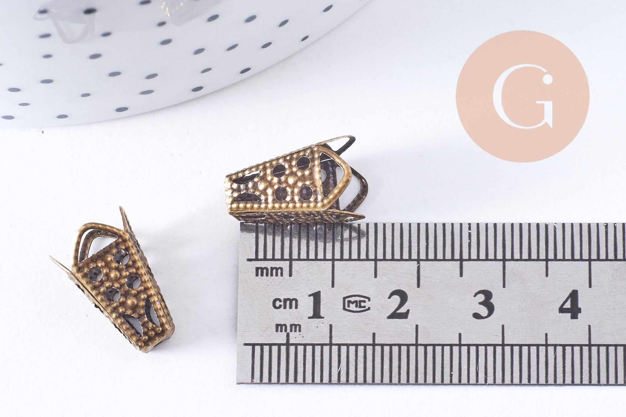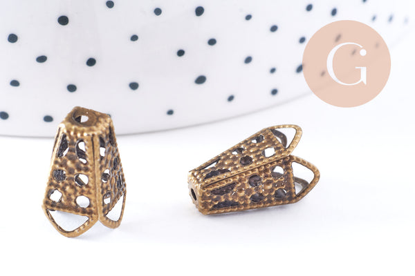Give your jewelry an elegant, vintage finish with these openwork flower-shaped collar cones in bronze metal . Their lace style makes them a delicate accessory for adorning beads, tassels, or chain fringes.