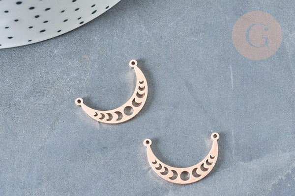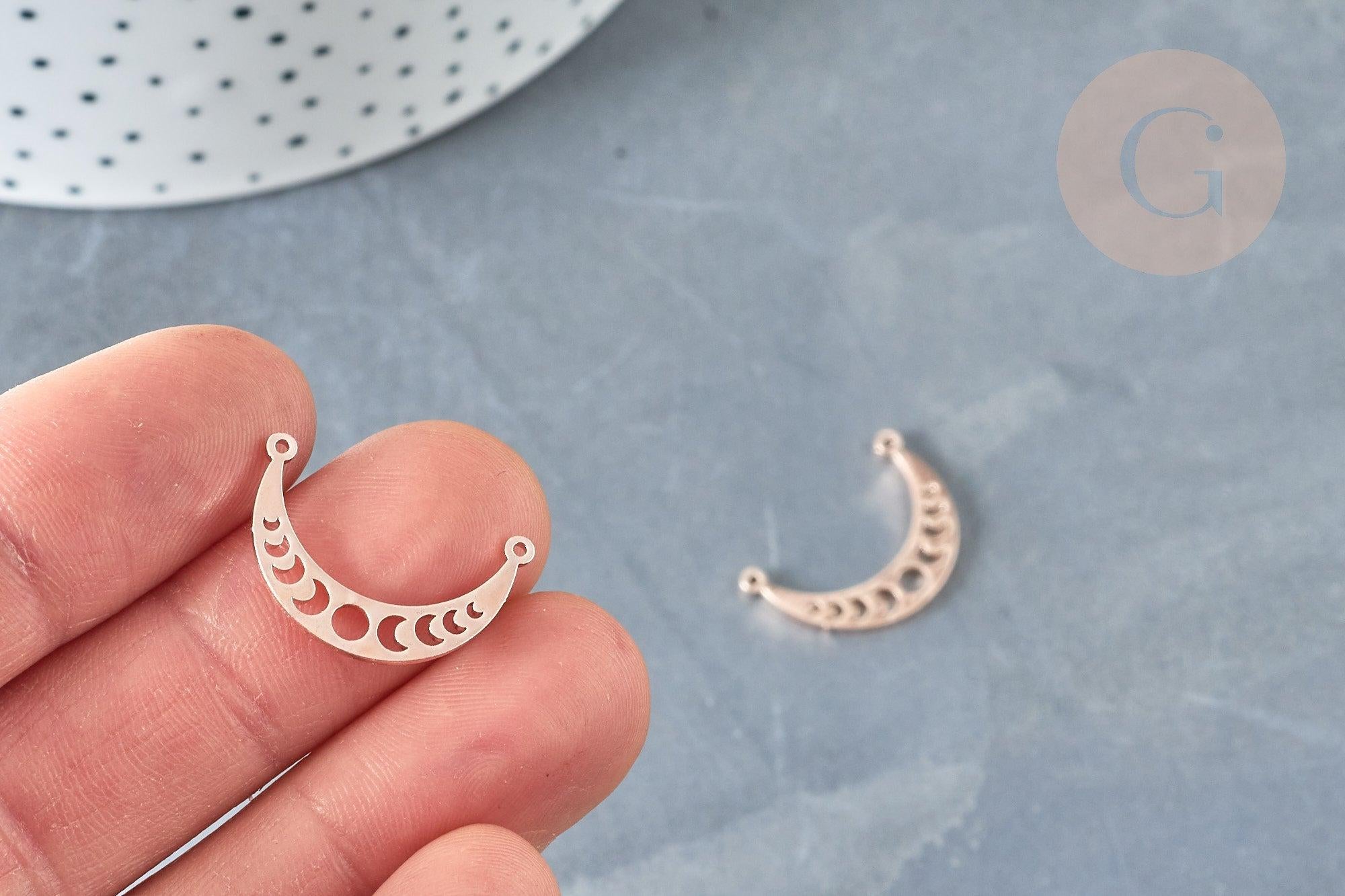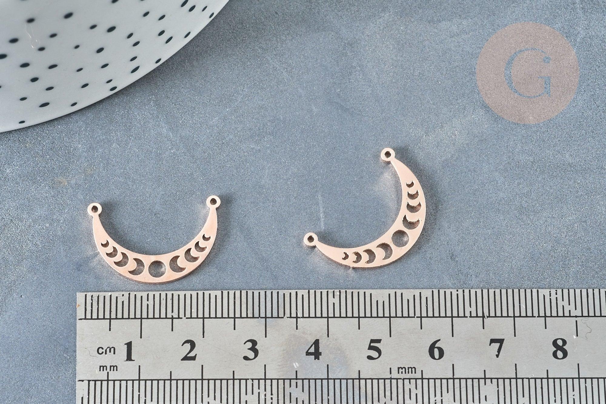 Fall for this two-ring moon connector pendant , in 21.5mm rose gold stainless steel, which will allow you to make many elegant jewelry and simple.