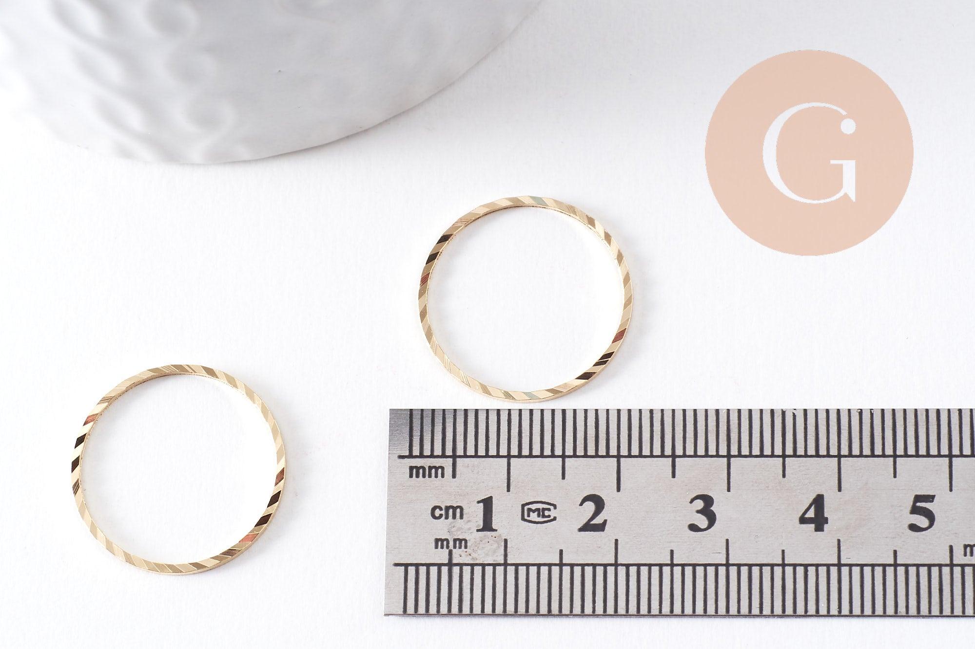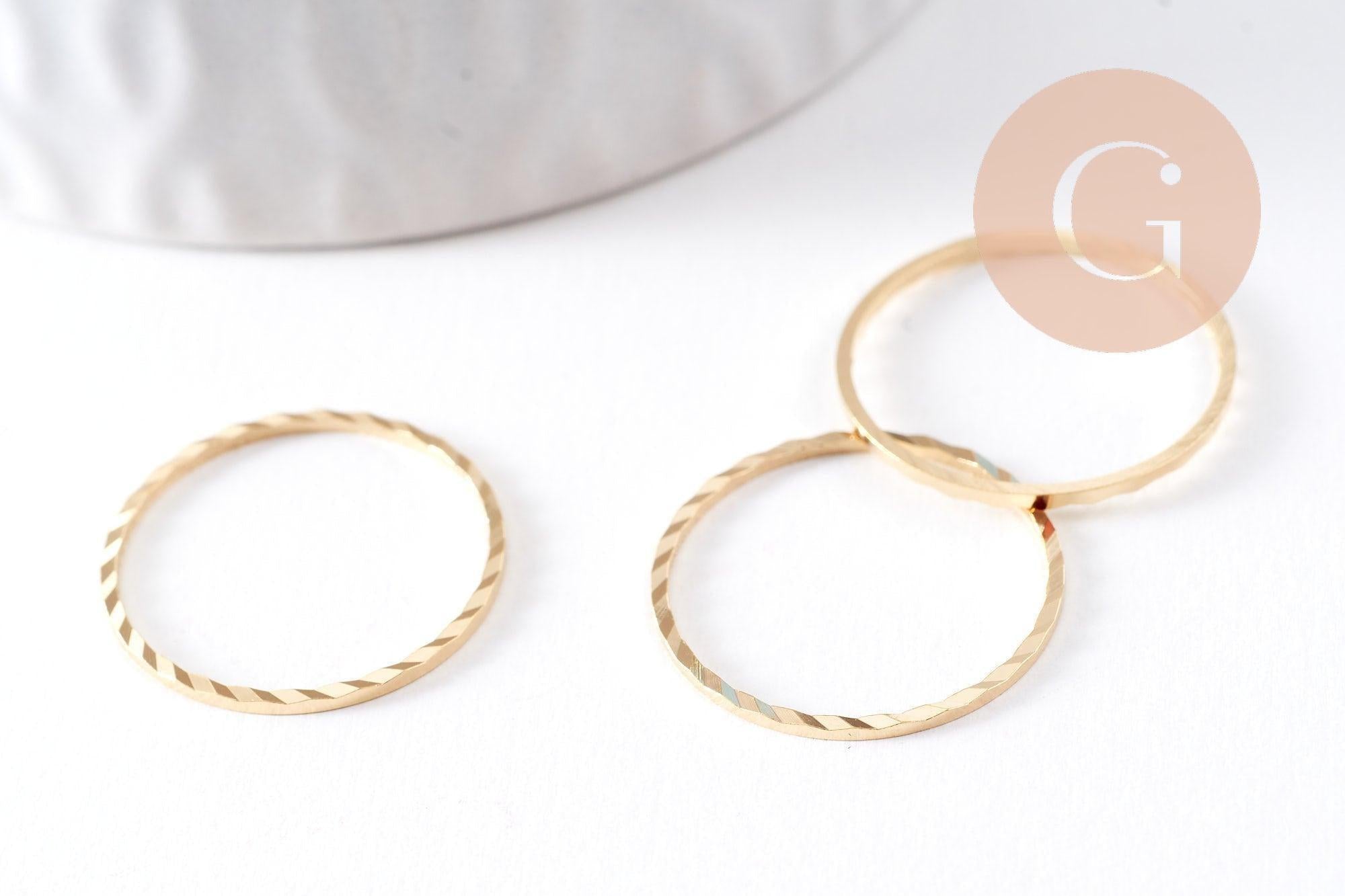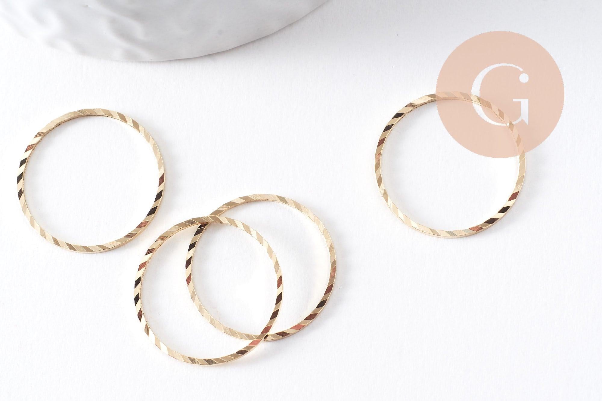 Connecteur rond strié en laiton doré 24K 20mm, x5 (G10388)