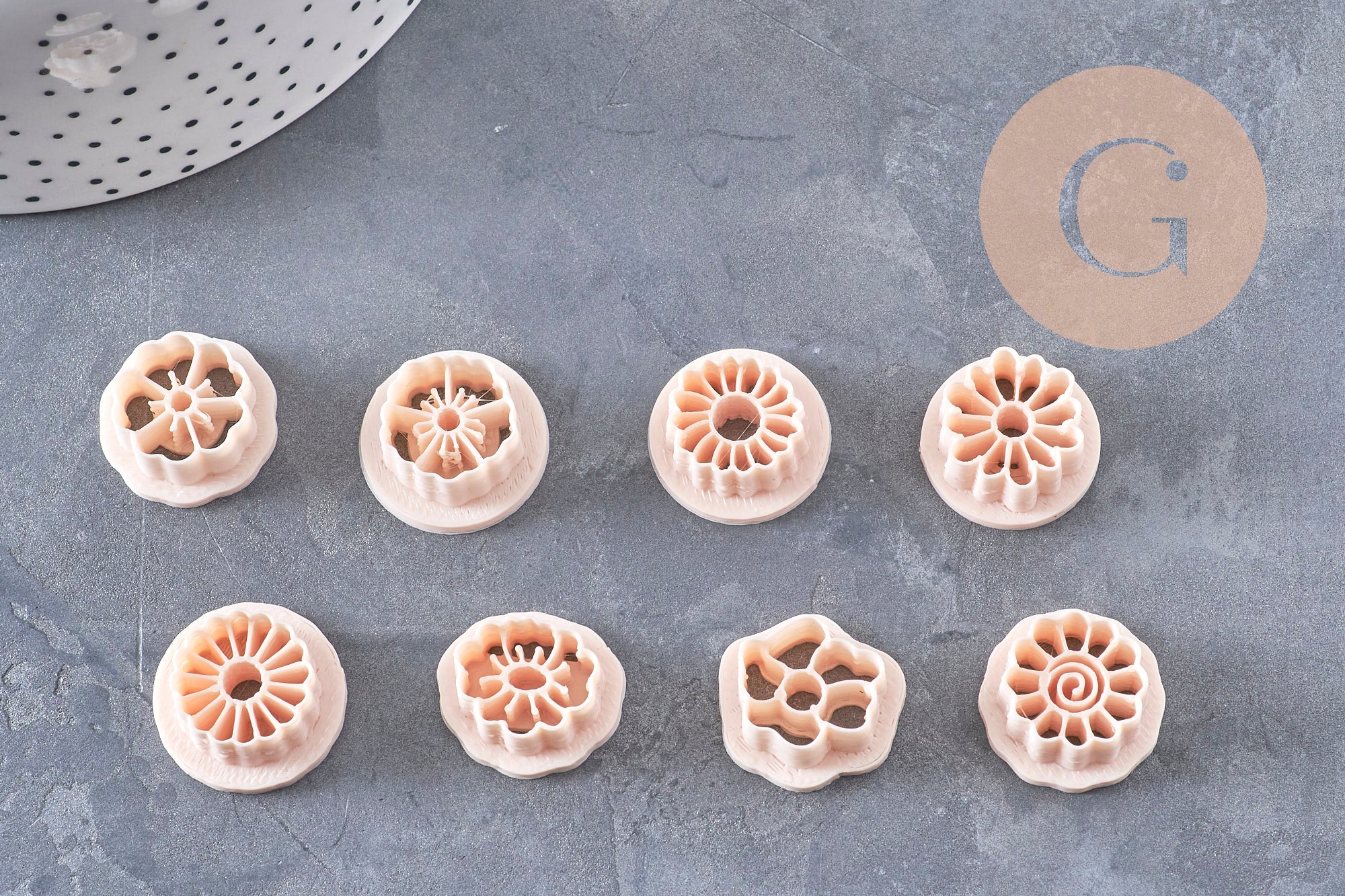 Flower cutter for polymer clay, ideal for creating interchangeable DIY hoop earrings with clean and professional finishes.