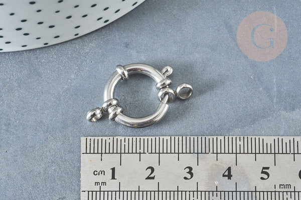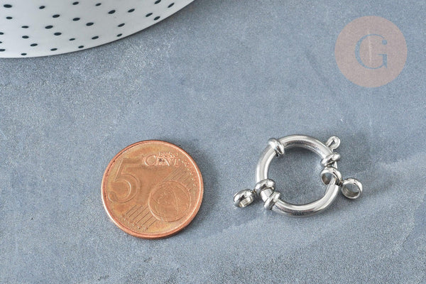 Add a modern and elegant touch to your creations with this platinum-colored 304 stainless steel marine buoy clasp . This round spring clasp, also known as a circular lobster clasp , combines practicality and aesthetics, while guaranteeing strength and durability.